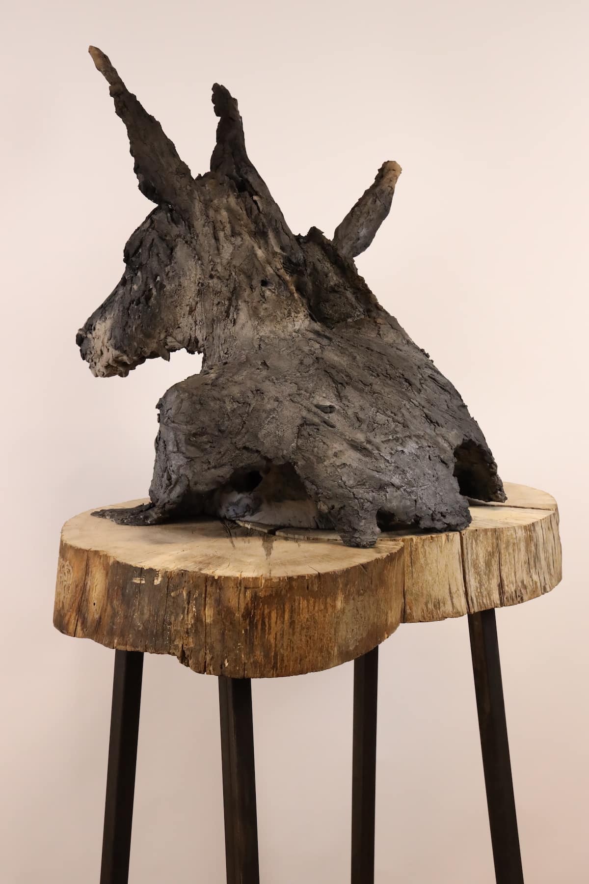 Donkeys’ skin is a smoke-fired sandstone sculpture by French contemporary artist Cécile Raynal.
