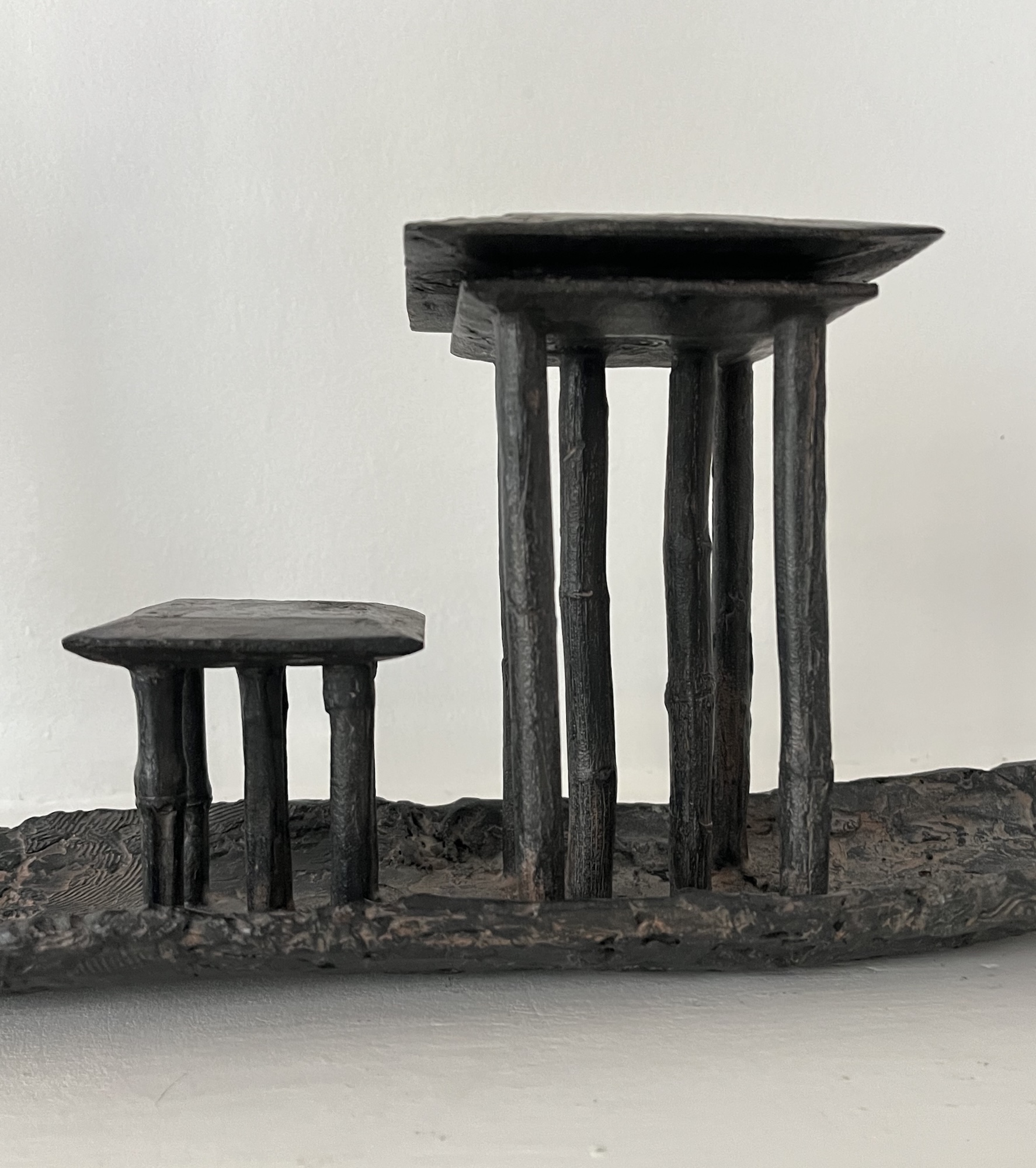 Marine de Soos has long sustained an openness to the world which permeates her career and her work. For each sculpture the artist draws her inspiration from her souvenirs, those of African and Asian landscapes. Whatever the initial image, there is always an emotion attached: “I can only work when I am in an emotional state,” says the artist. Emotion as sole guide and at the finish line, an invitation on a voyage steeped in a unique poetry which sends the observer into a state of contemplation.