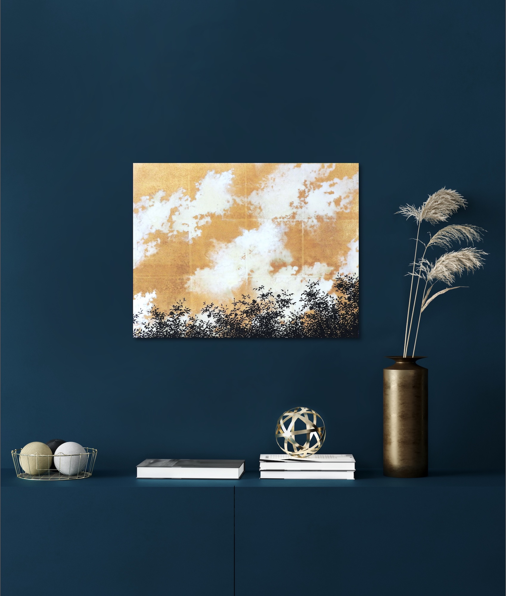 “Our lives are like clouds adrift in the boundless sky, surrendered to the wind and never the same shape, vanishing at last into the air. Gold is the symbol of wealth, which is also never permanent. Through life experiences, our soul becomes enriched, shaping and transforming our personality over time, just as clouds are never stable but are in constant motion.” Shoko Okumura