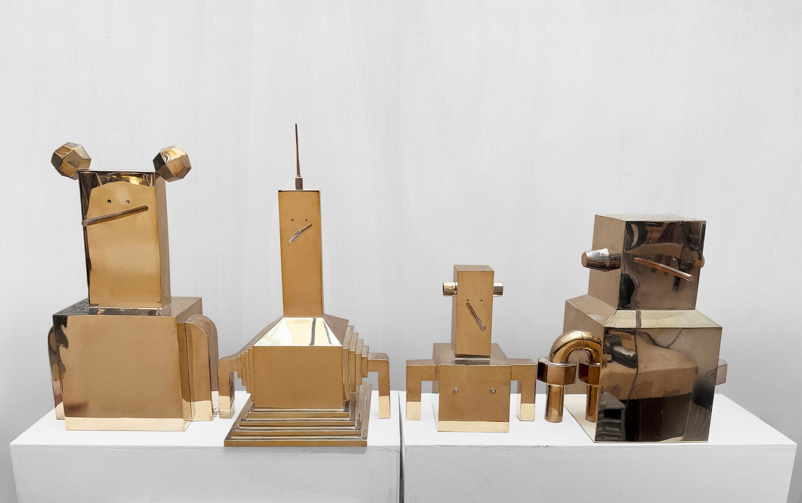Marcelo Burgos’ artistic world is deeply rooted in childhood: children’s dreams and nightmares, populated by fantastic creatures, demons, monsters and dragons, provide the artist with his primary source of inspiration. ‘The Robots’ series was developed during the imposed global lockdown at the beginning of 2020. During the set-up of online drawing workshops for children, Marcelo Martin Burgos realized that a robot’s figure is an avatar in the child’s mind. The robot is an emotionally detached character that children can relate to during a time of anxiety and uncertainty. This heart-warming figure is also interesting as it allows the artist to create rigid geometry artworks infused with childhood emotions.