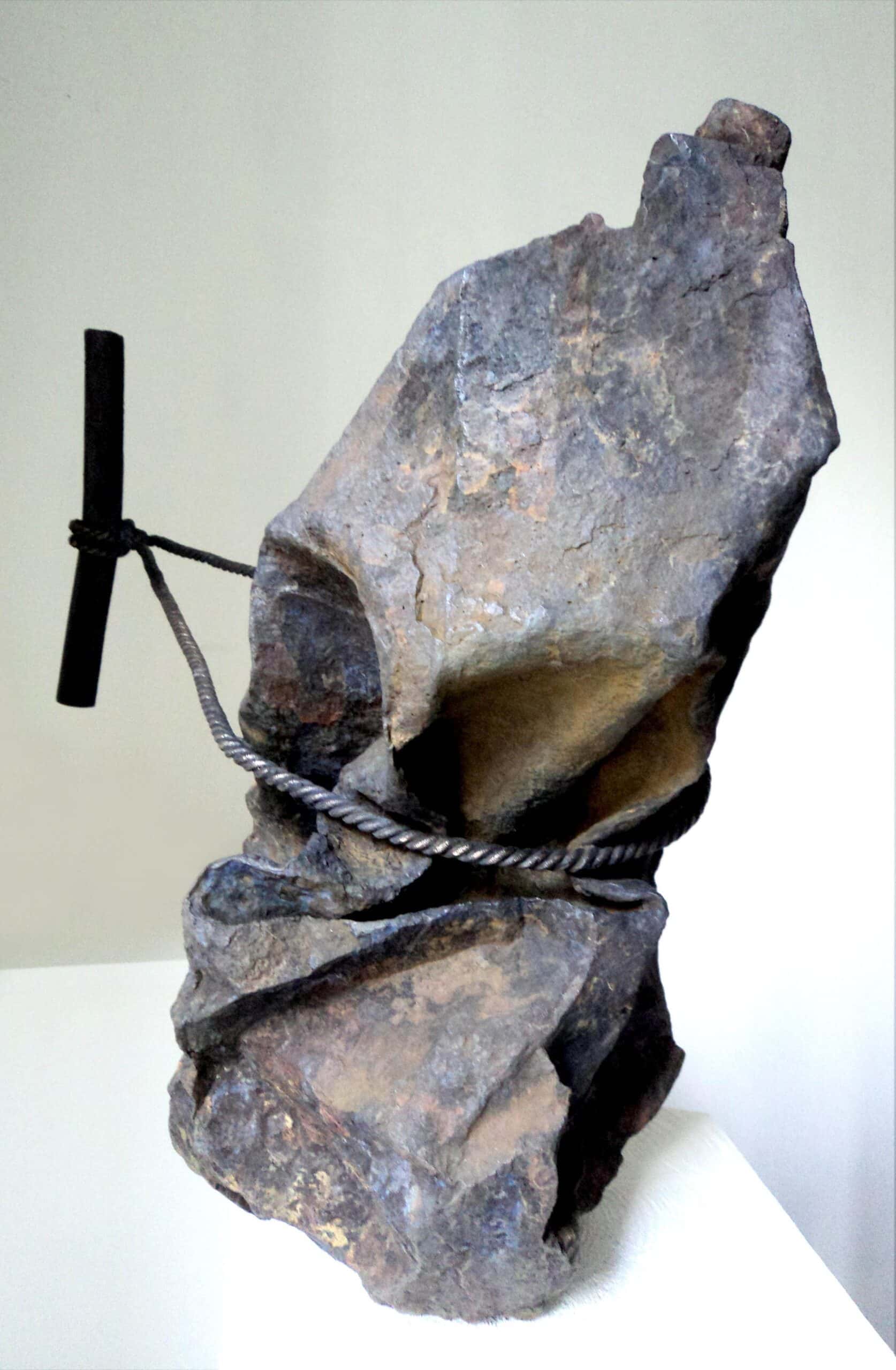 Emptiness Attraction is a work by contemporary French artist Romain Langlois. In this bronze sculpture, Romain Langlois very realistically imitates the aspect of rock. The textures are obtained in the casting process and the colours through different patinas. Romain Langlois has denatured the banal object and reshaped it. He is playing with the matter and the physical attraction. The work both intrigues us and transforms our impression of it.