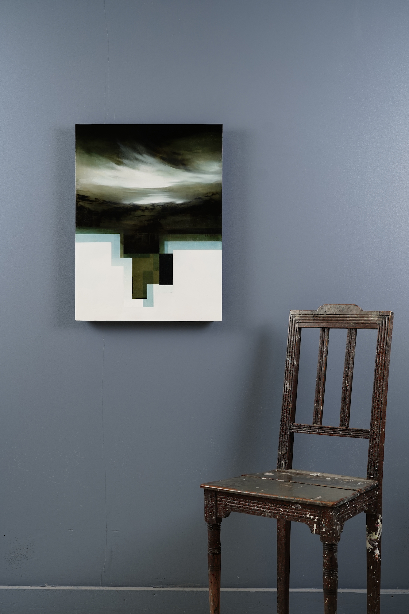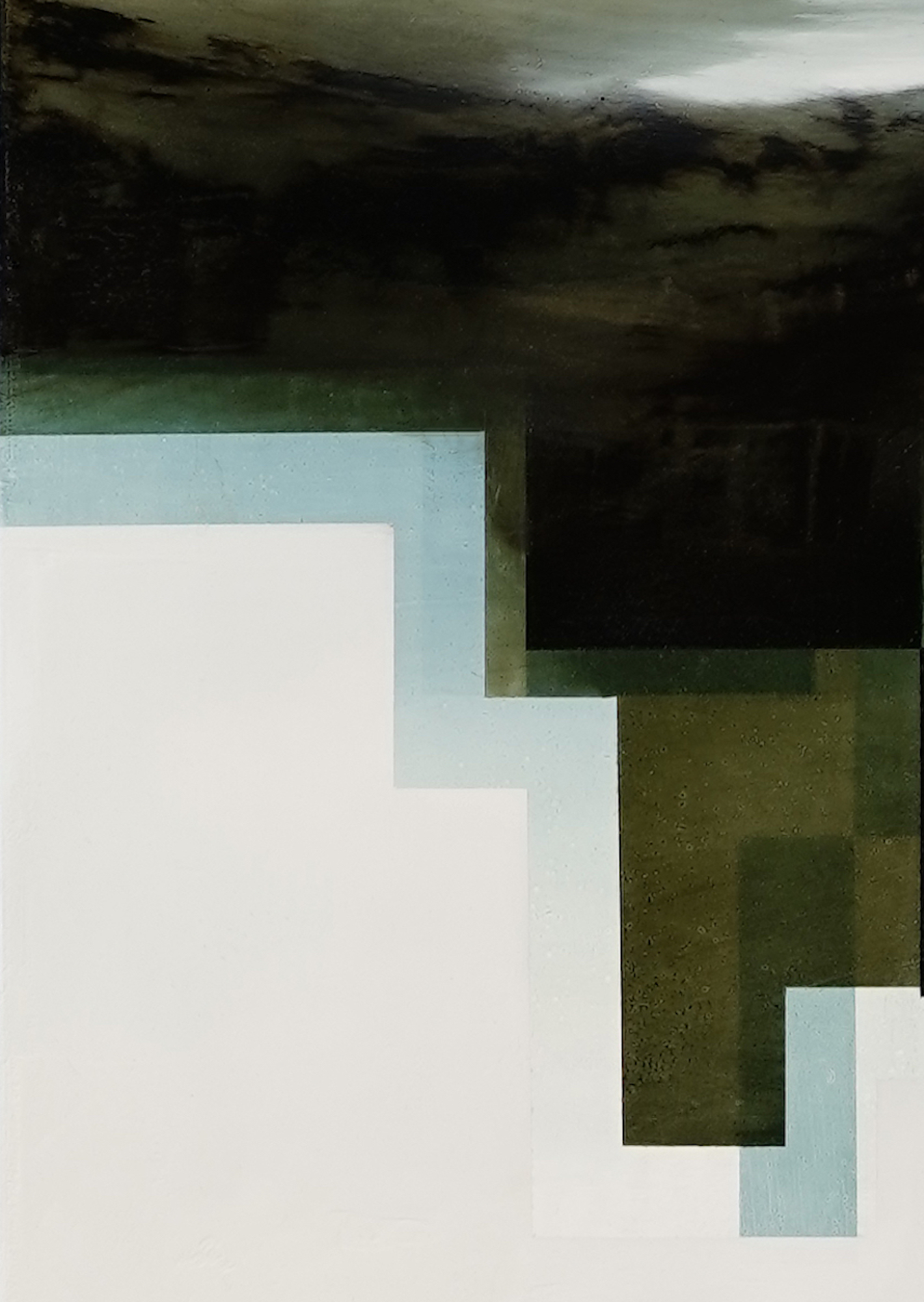 Expansion I is a painting by Dutch contemporary artist Joachim van der Vlugt. This oil on wood is an abstract composition, that can be inspired by landscape painting.