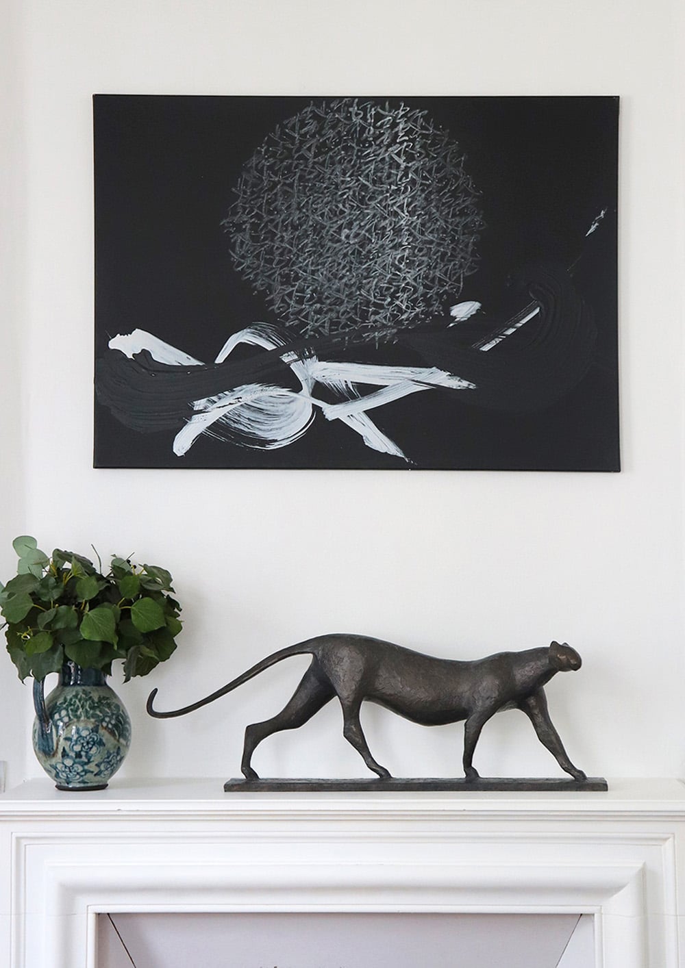 Feline VI is a bronze sculpture by the French contemporary artist Pierre Yermia, depicting a wild cat.