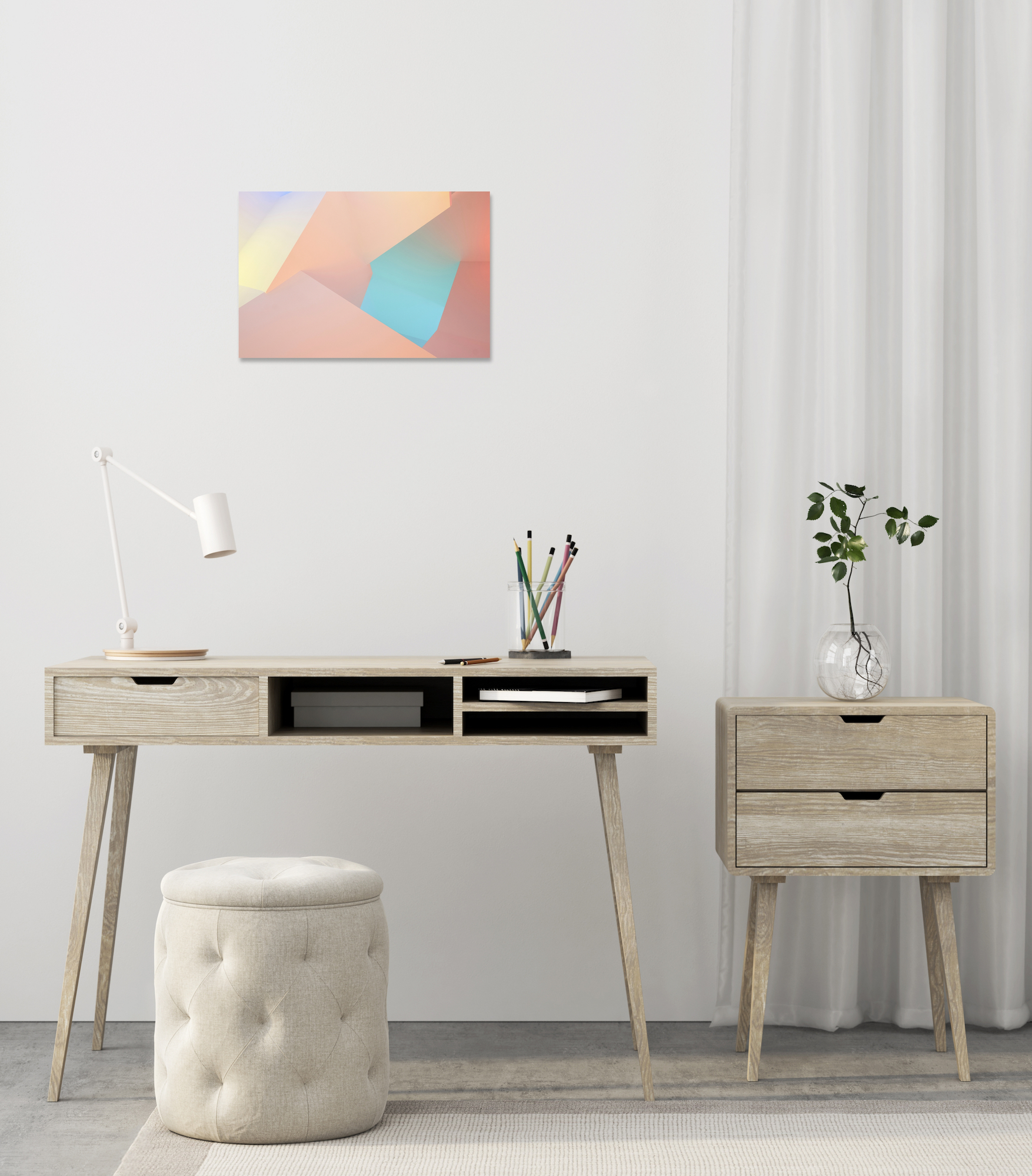 The artist uses overexposure when shooting to achieve a restrained language of clear, luminous tones, in which only the essential is visible. The simplicity of lines, shapes and colors is combined with careful, long-studied composition. The photographs are personally printed by the artist on textured cotton paper, which gives the image a velvety matte effect that is visually similar to watercolor.