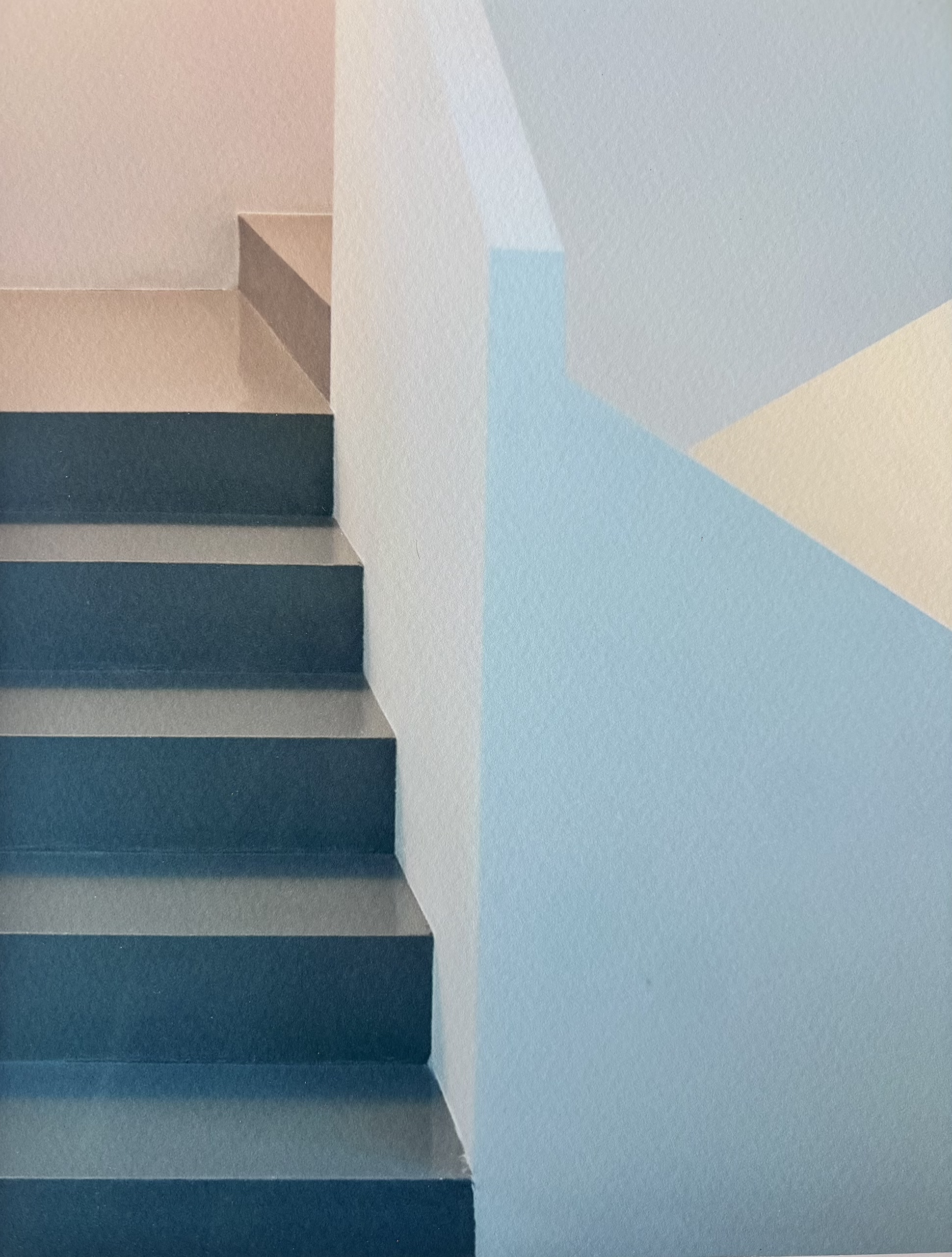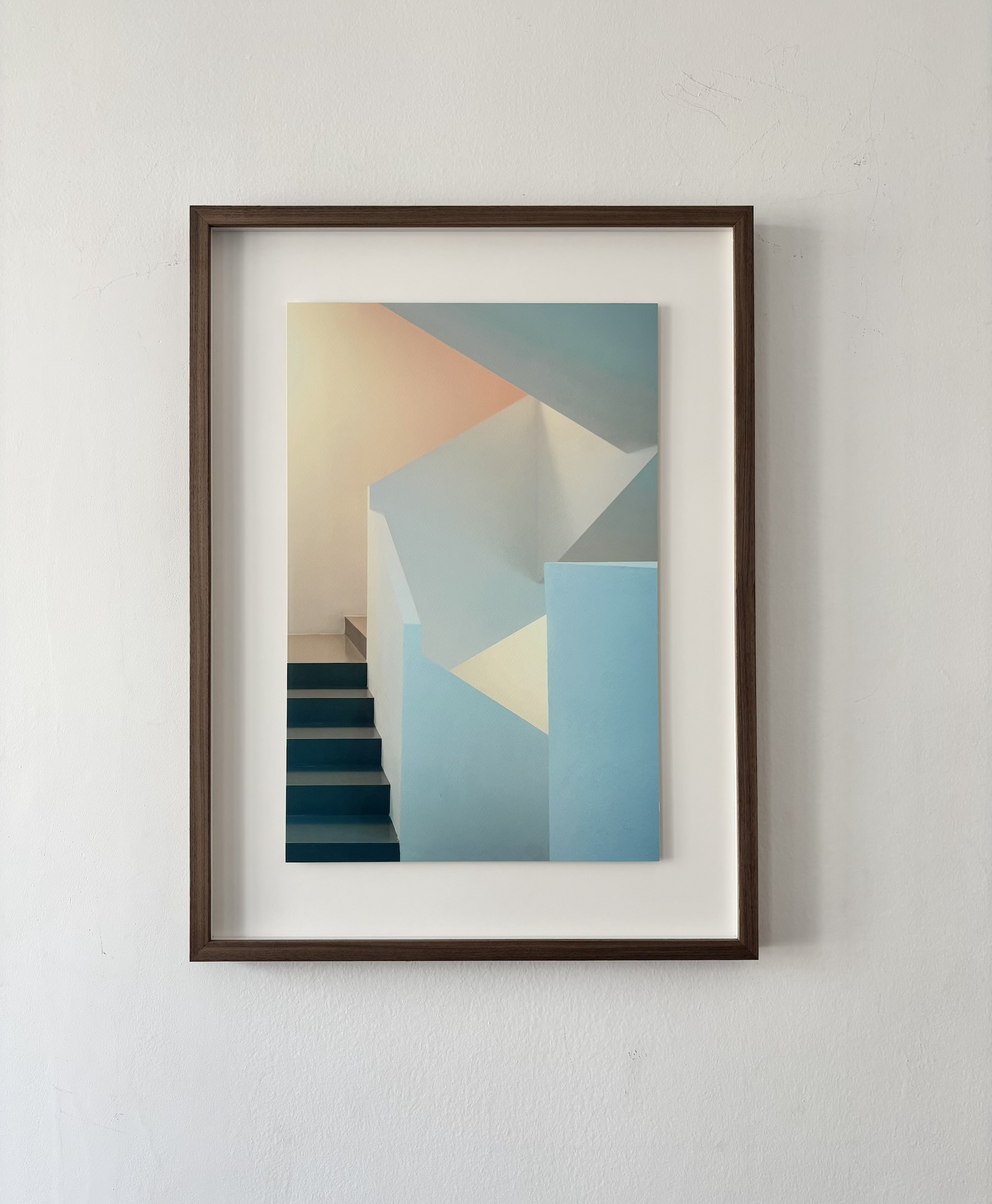 The artist uses overexposure when shooting to achieve a restrained language of clear, luminous tones, in which only the essential is visible. The simplicity of lines, shapes and colors is combined with careful, long-studied composition. The photographs are personally printed by the artist on textured cotton paper, which gives the image a velvety matte effect that is visually similar to watercolor.