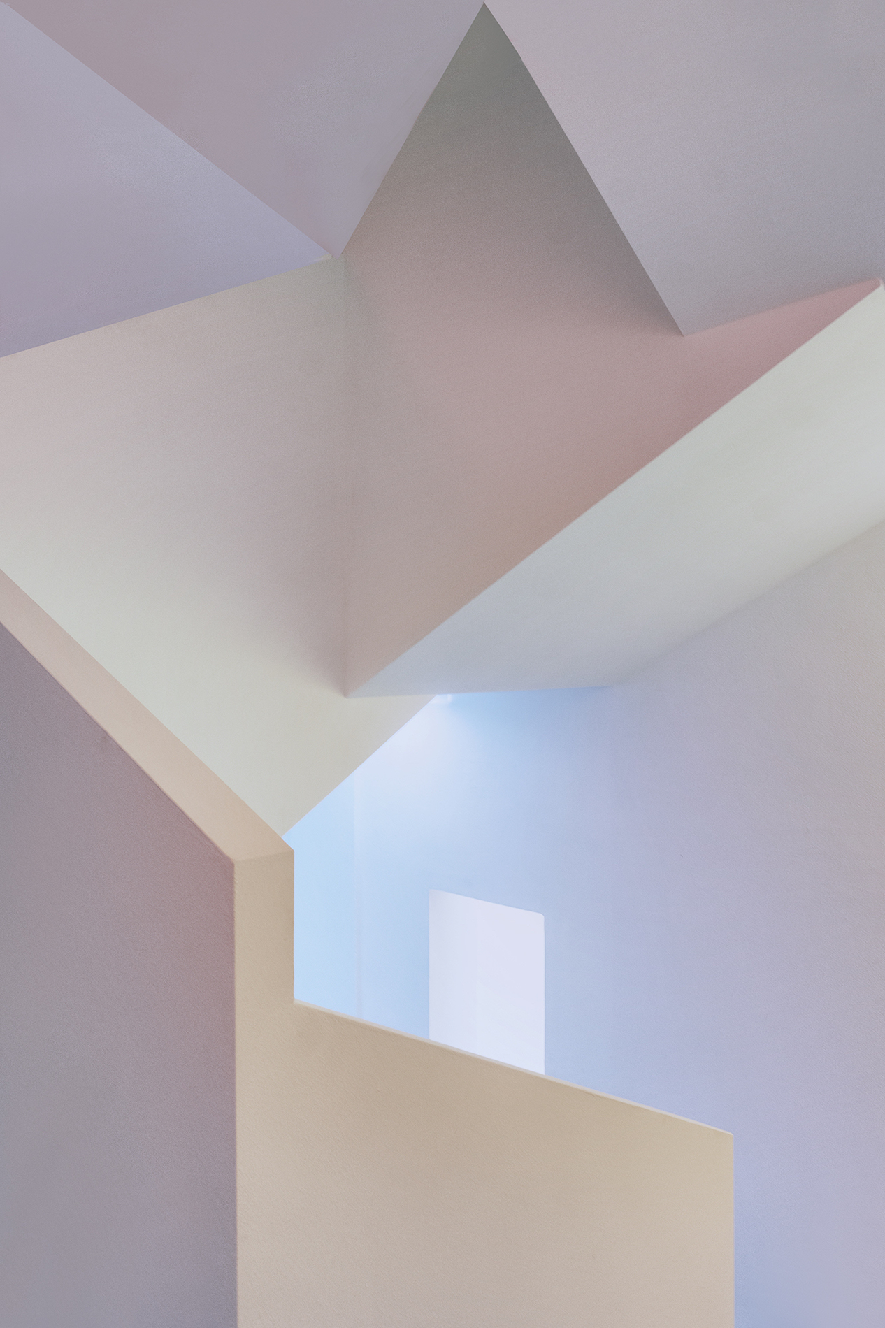 The series began during the Covid-19 pandemic and was completed in 2023. Rather than showing the deserted squares and streets that characterised the urban landscapes of the period, Riccardo Varini chose to focus his lens on the geometric shapes and coloured lights of the new layout of Reggio Emilia’s Civic Museums, designed by the architect Italo Rota. In this series, the photographer’s restrained language and light tones combine with this architecture to nourish the simple, pure pleasure of aesthetic contemplation.
