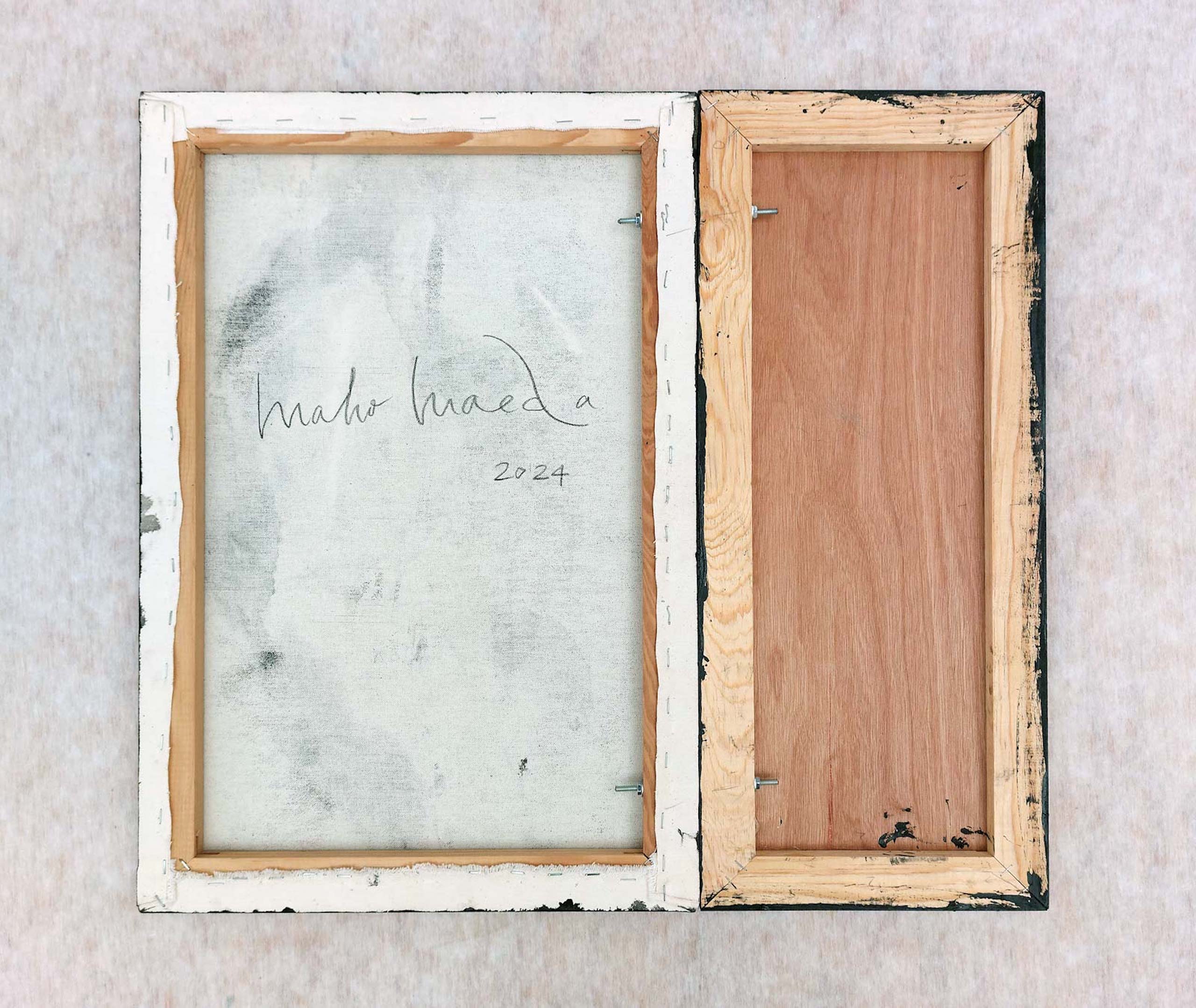 Abstract shapes and patterns complement the paintings, evoking natural elements such as leaves, bird wings and buds. However, Maho Maeda’s works are not representations or imitations of nature, but rather personal interpretations of the sounds of nature materialized in a visual form and a concrete medium.