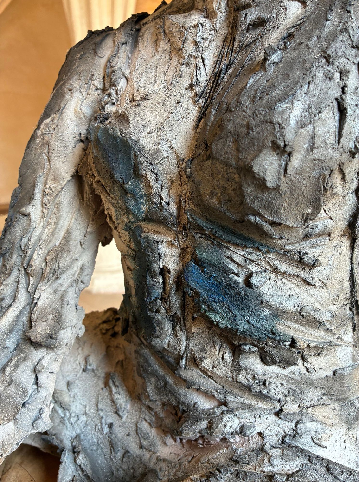 This portrait is a part of the ‘Birds and Mothers’ series, conceived in a social centre in Normandy, the area where the sculptor lives. This welcoming place for both children and people in distress, is mainly frequented by women of all ages, who the artist has admired their strength and tenacity. Cecile, however, also seen mothers’ complexity, both tender and possessive. The portraits are covered with the lives and uncertainties of these people with multiple and unique stories.