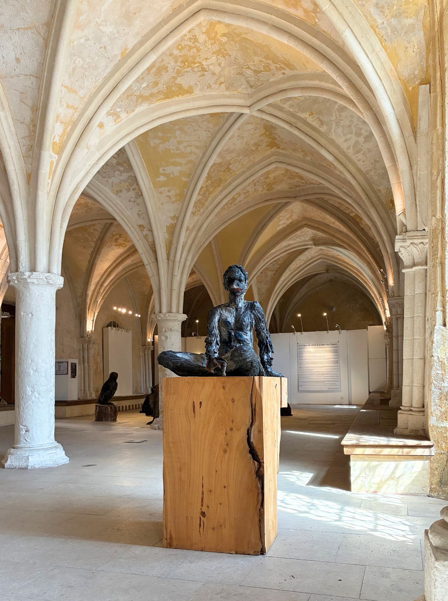 The photographs were taken at Cécile Raynal’s solo show, À la table des Dames (At the Ladies’ Table), at Montivilliers Abbey in Normandy (2025).