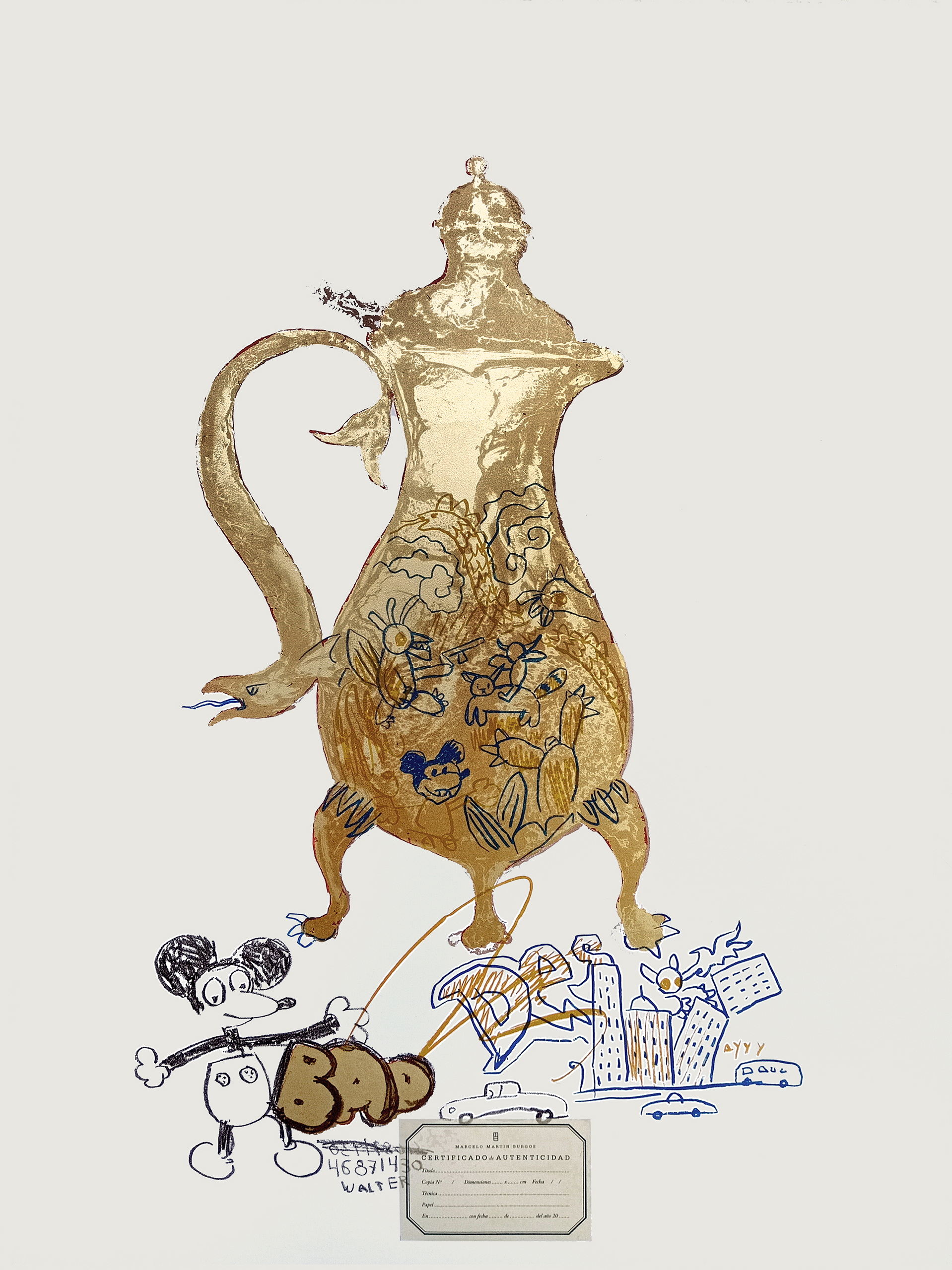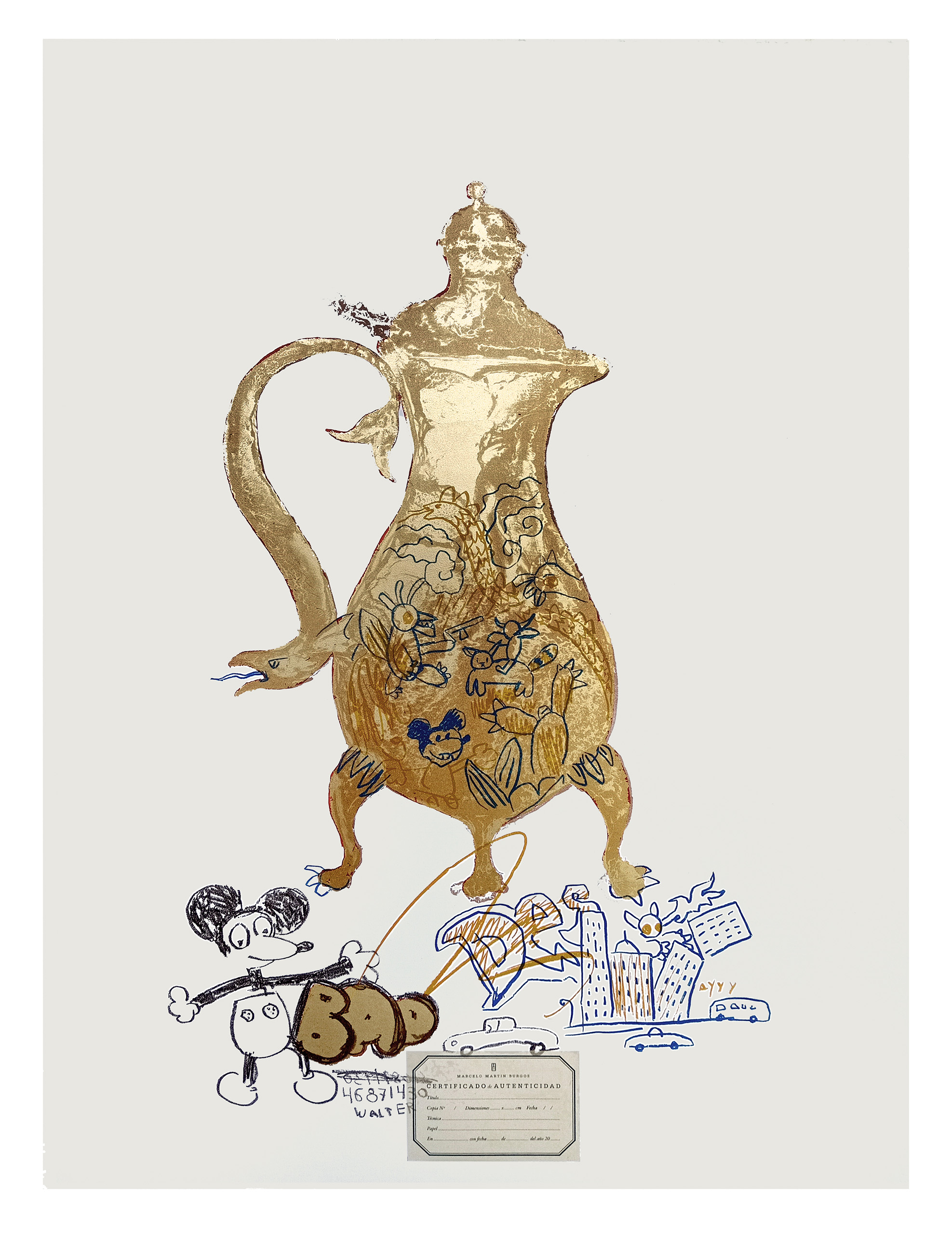 Kettle II is a lithograph by contemporary Argentinian artist Marcelo Martin Burgos.
