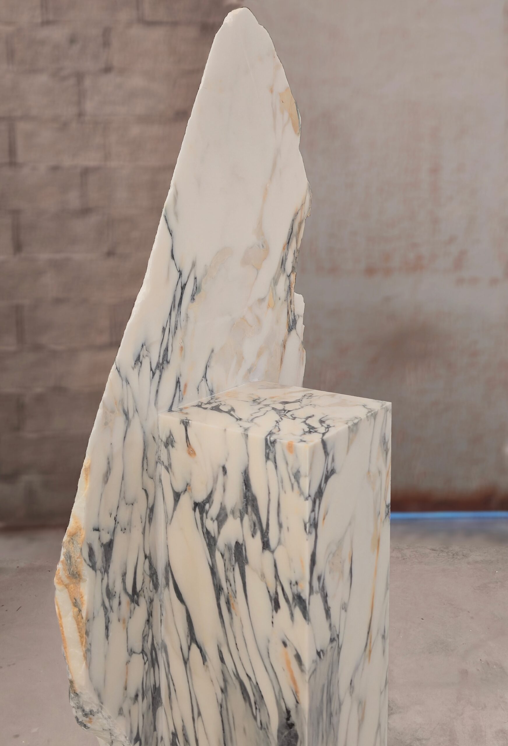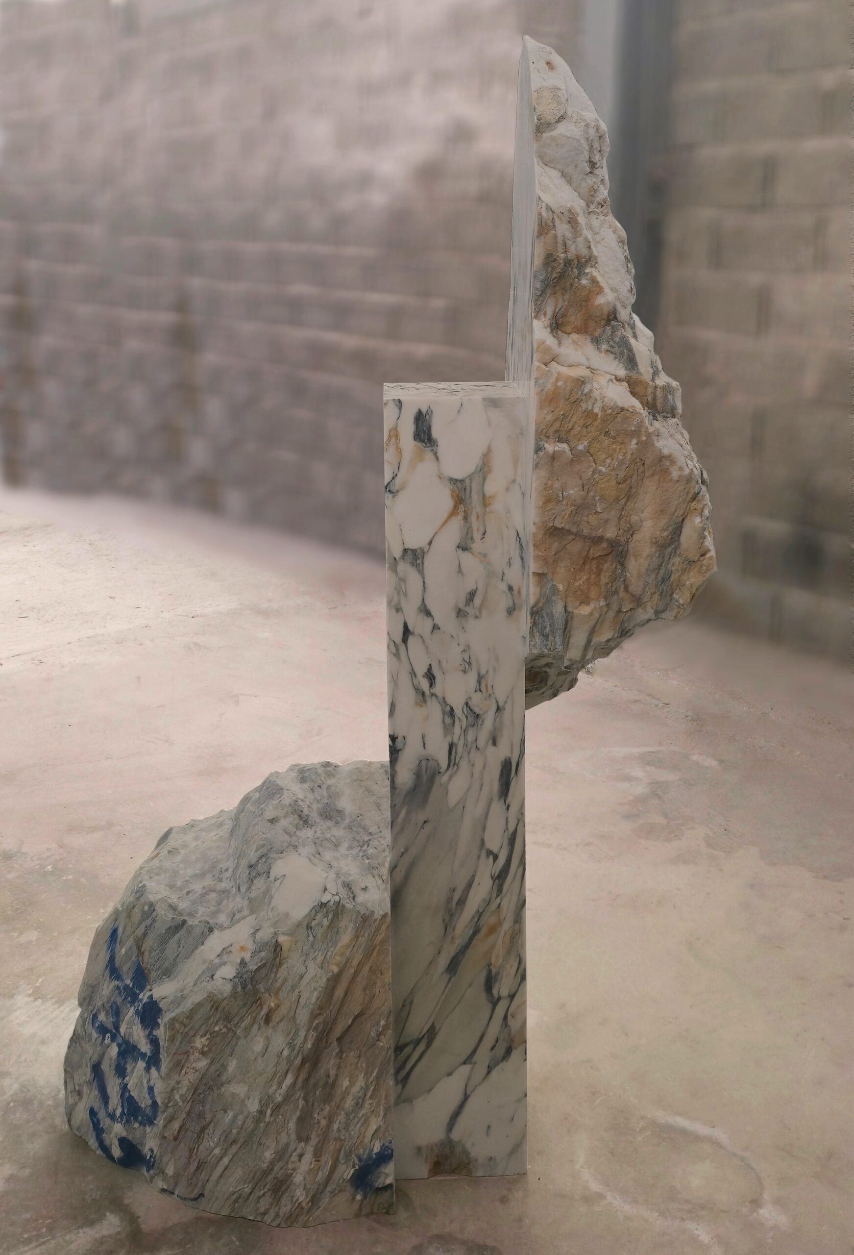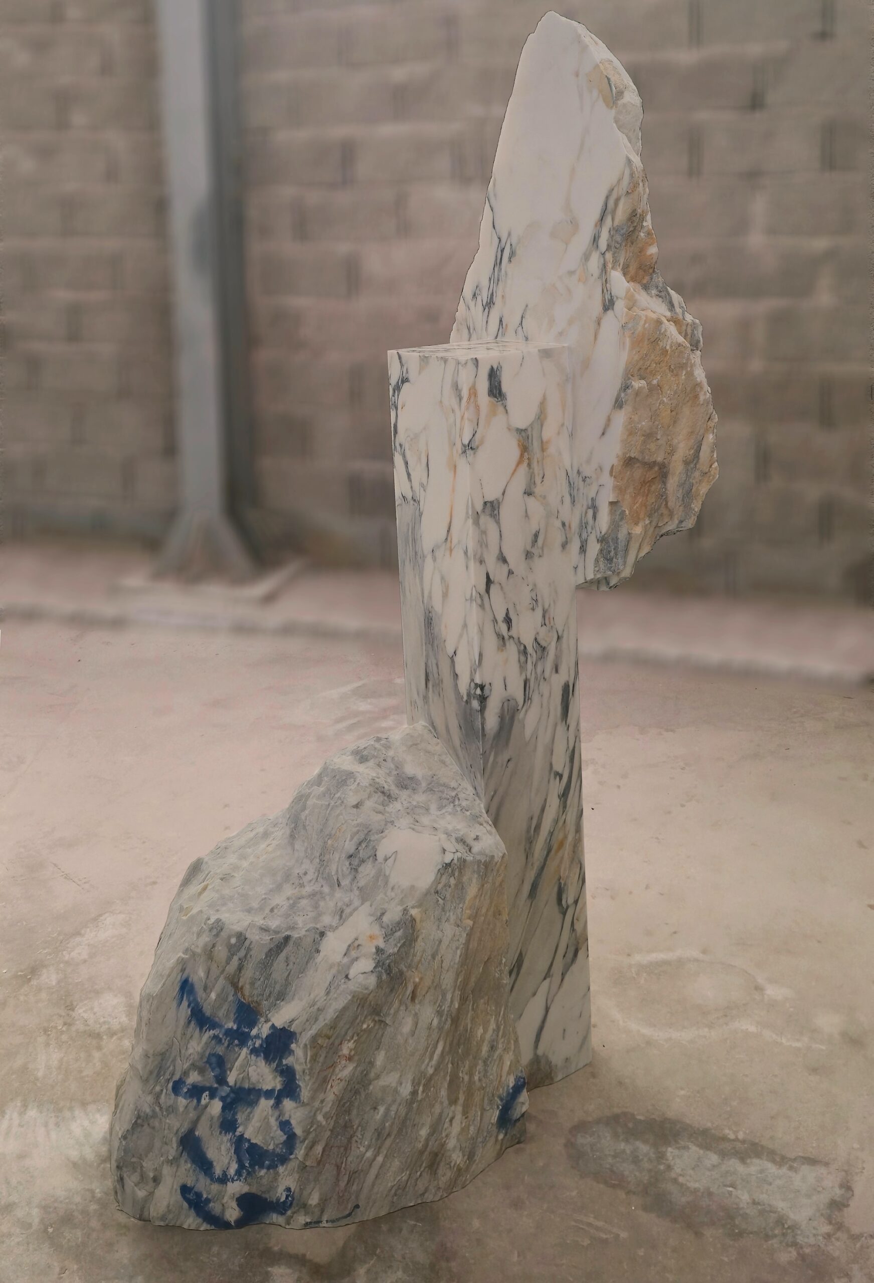 Each artwork in the “Korai” series is identical in shape, but made from a different exceptional marble: Cipollino d’Elbe, Fantastico d’Arni, Rosso Collemandina, Portoro, Bardiglio, the sculptural marble from Michelangelo’s quarry… These marbles are typical of the period of imperial Roman architecture. Fiordipesco marble is also known as Fior di Pesco marble. Its name comes from the Italian words meaning “peach blossom,” referring to its soft pink and grey tones. This marble comes from the Apuan Alps, a mountain range in northwestern Tuscany, an area famous for its historic stone quarries used since Roman times. This elegant and rare marble has been used historically in classical architecture and decorative interiors, appreciated for its refined color palette and natural movement.