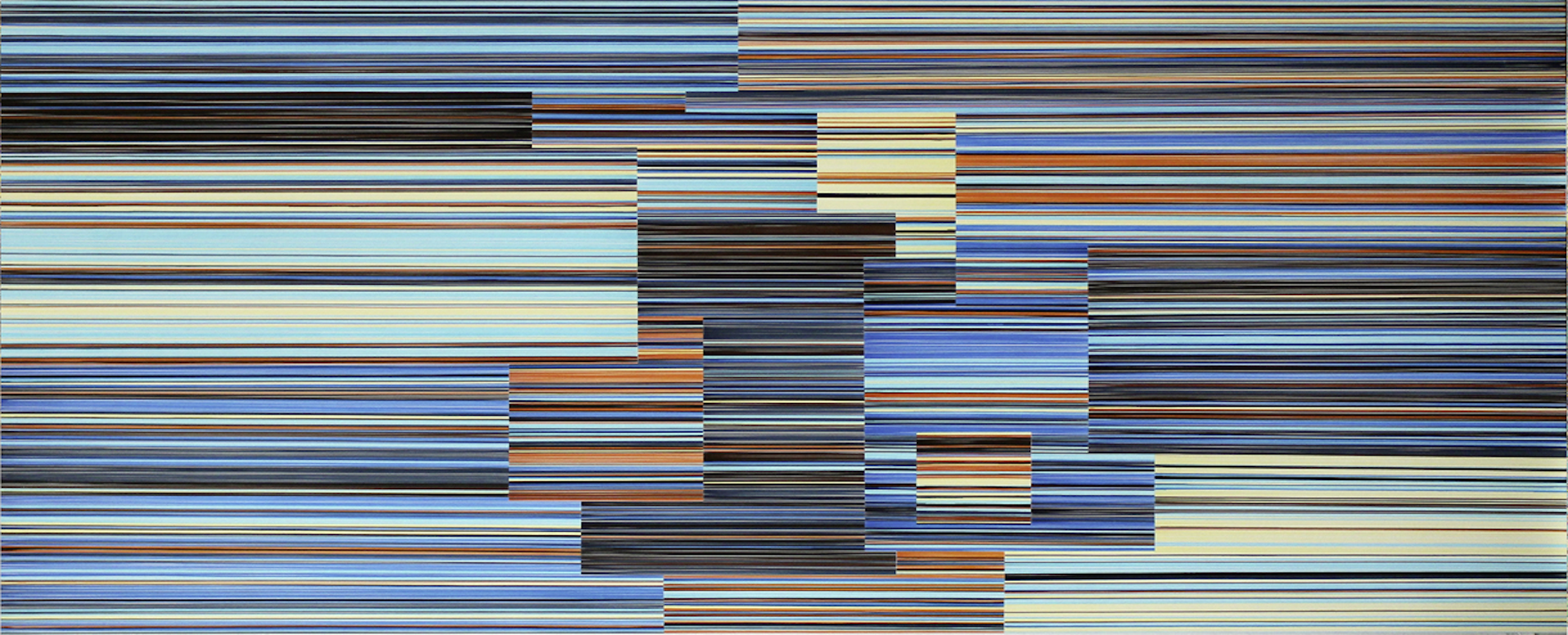 With the simple use of lines Doris Marten explores the perception of colours and their influence on each other. Line reveal colours individually and they bring to life the effect of one colour upon another. The artist has developed a thorough knowledge of colours which allows her to create optical illusions, impressions of movement and intense variations of light. She views time as a veritable production material, a necessary part of the work’s development during the creative process.