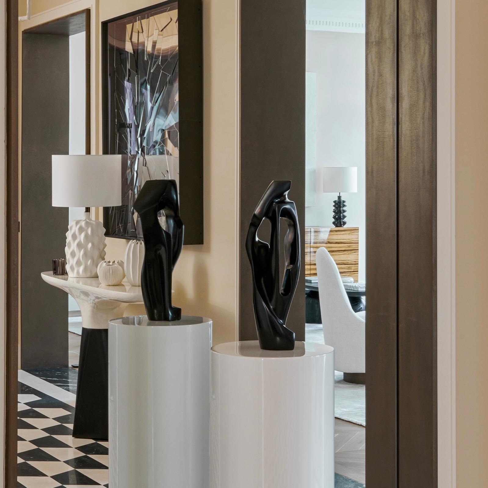 His works in bronze, very often marked by a verticality with totemic accents, reflect an aesthetic pursuit focused on the elegance of lines and forms, and where light plays a vital role. For the artist, each sculpture is multifaceted: it tells a different story whenever you look at it from a different angle. His real aim is to achieve a harmonious visual experience of the work, whatever the angle from which it is viewed.