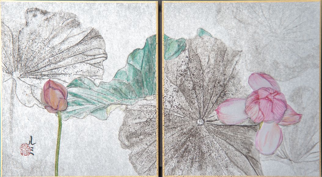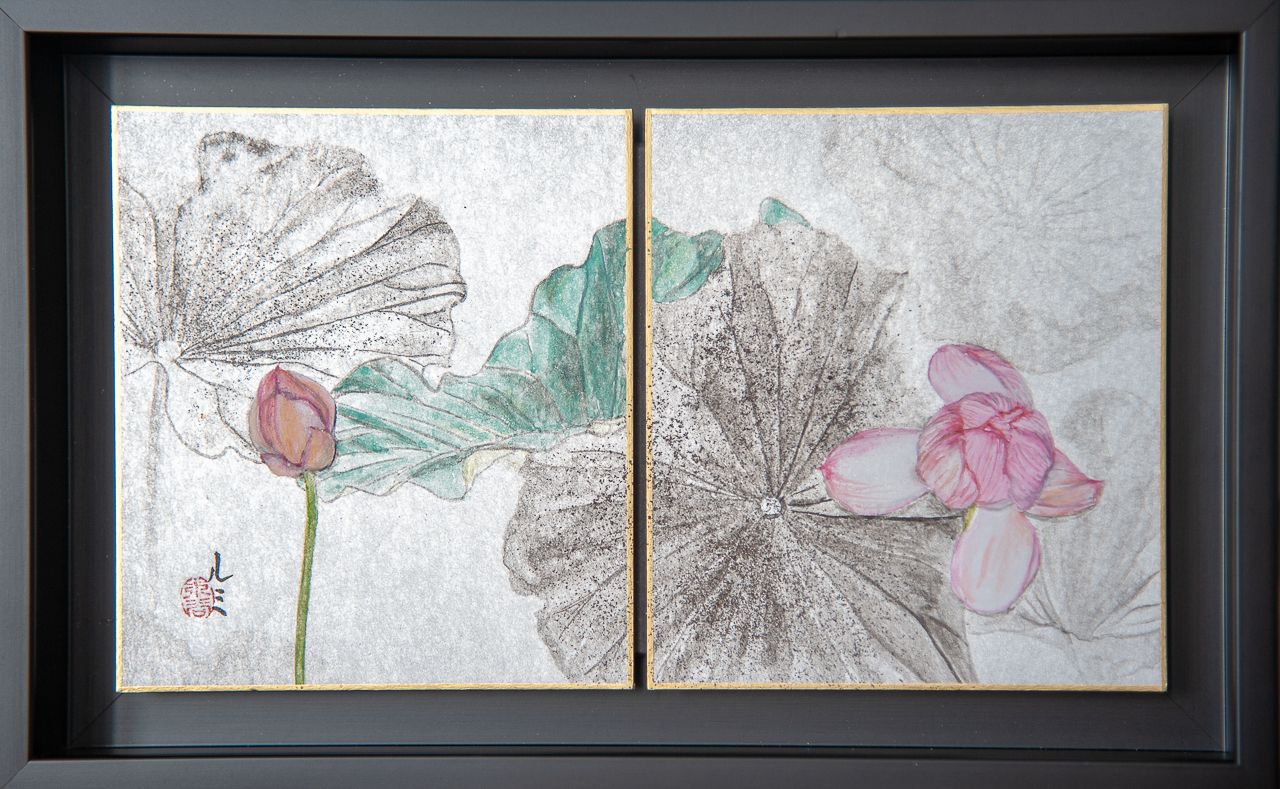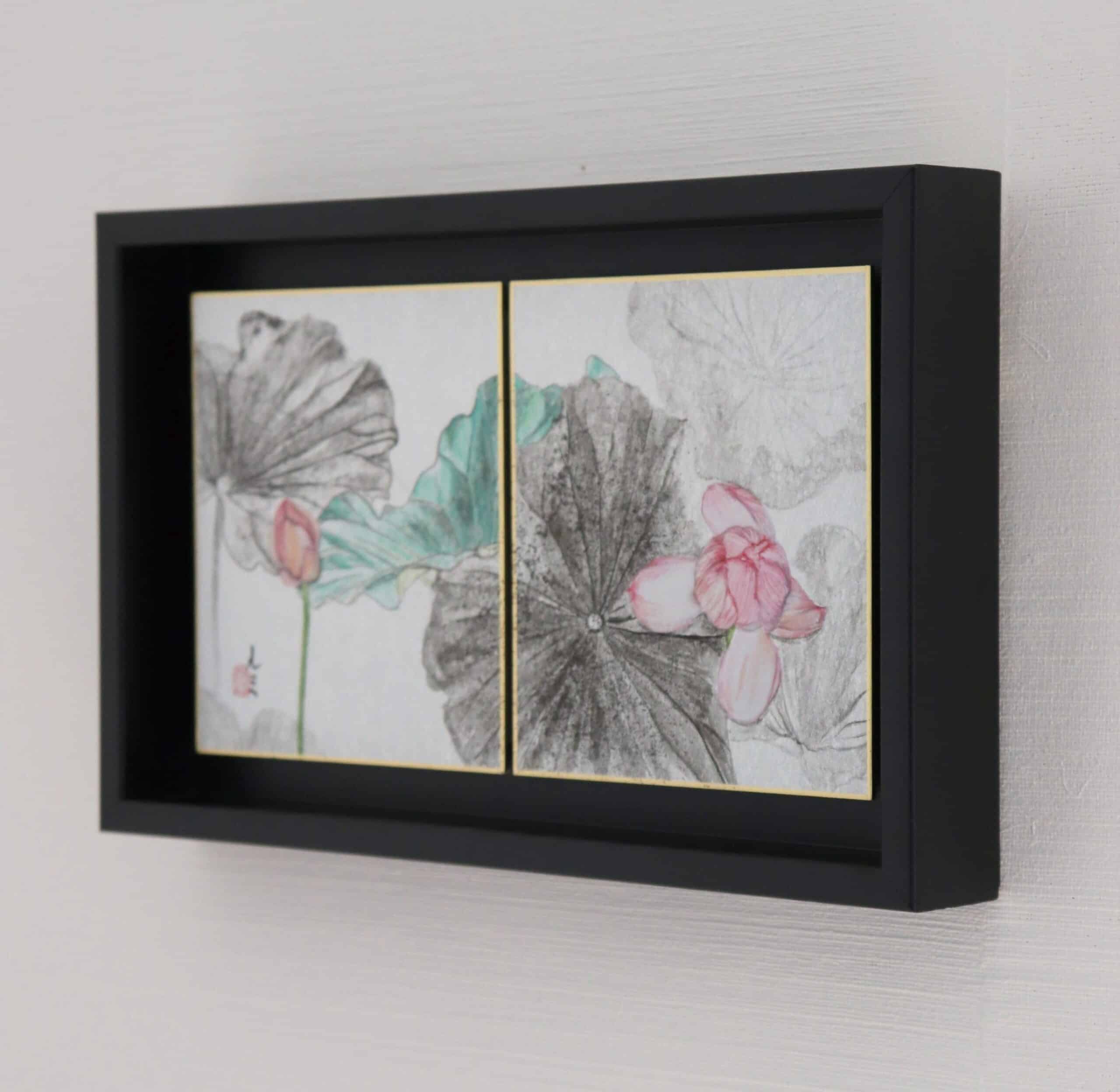 Lotus is a painting by contemporary Franco-Japanese artist Lumi Mizutani. In this series of figurative paintings, Lumi Mizutani pays tribute to the landscapes of Japan. Plum and cherry blossoms, pines, weeping willows, the artist places a lot of importance on nature and trees in her works of art. She also represents typical animals, imperial palaces and effigies of Buddha. This series is characterized by the use of India ink combined with color pigments.