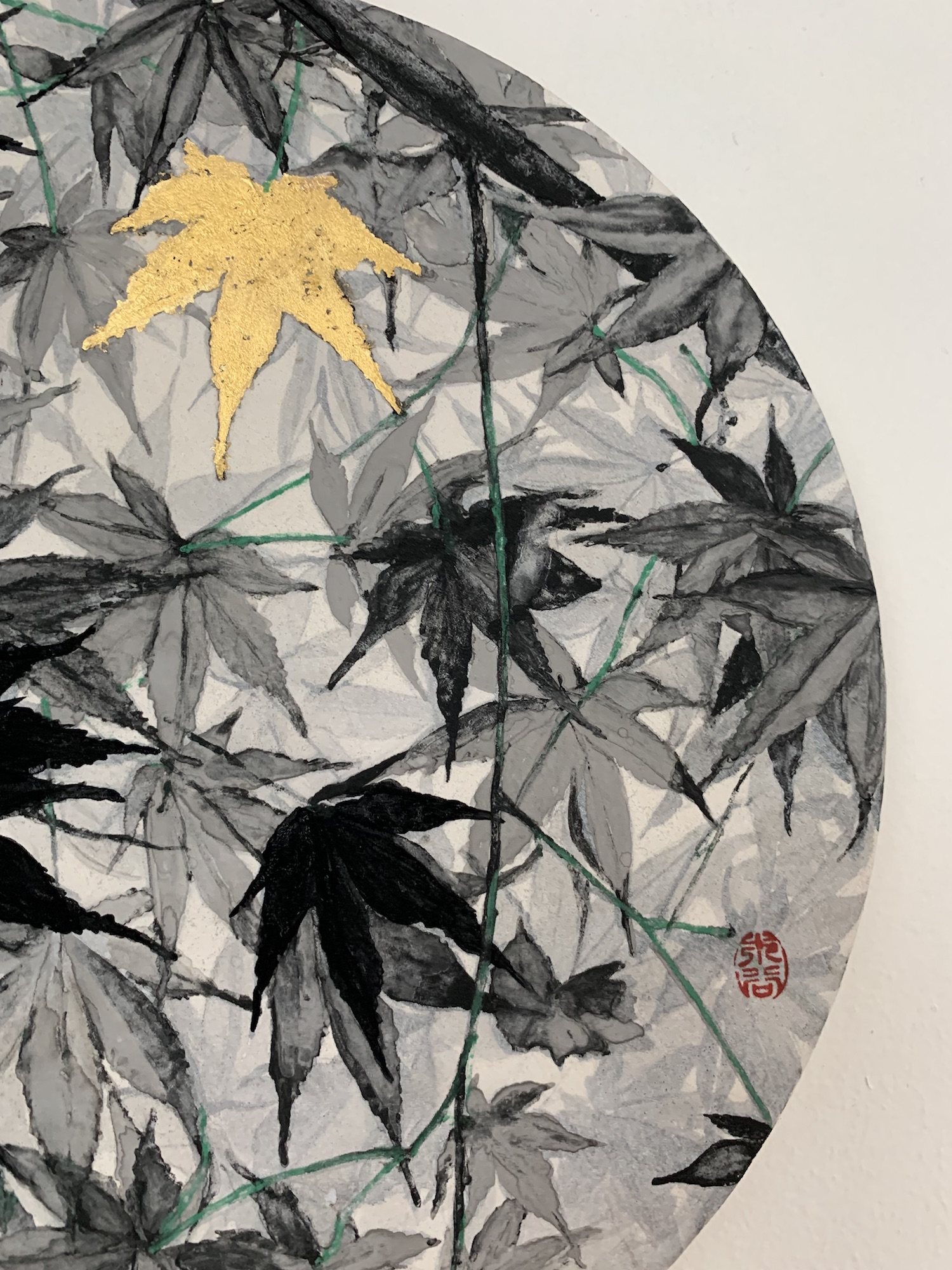 Maples is a painting by contemporary Franco-Japanese artist Lumi Mizutani. In this series of figurative paintings, she pays tribute to the landscapes of Japan, especially Higashiyama-ku, the garden of Honpo-ji temple in Kyoto, and Ueno on Tokyo.