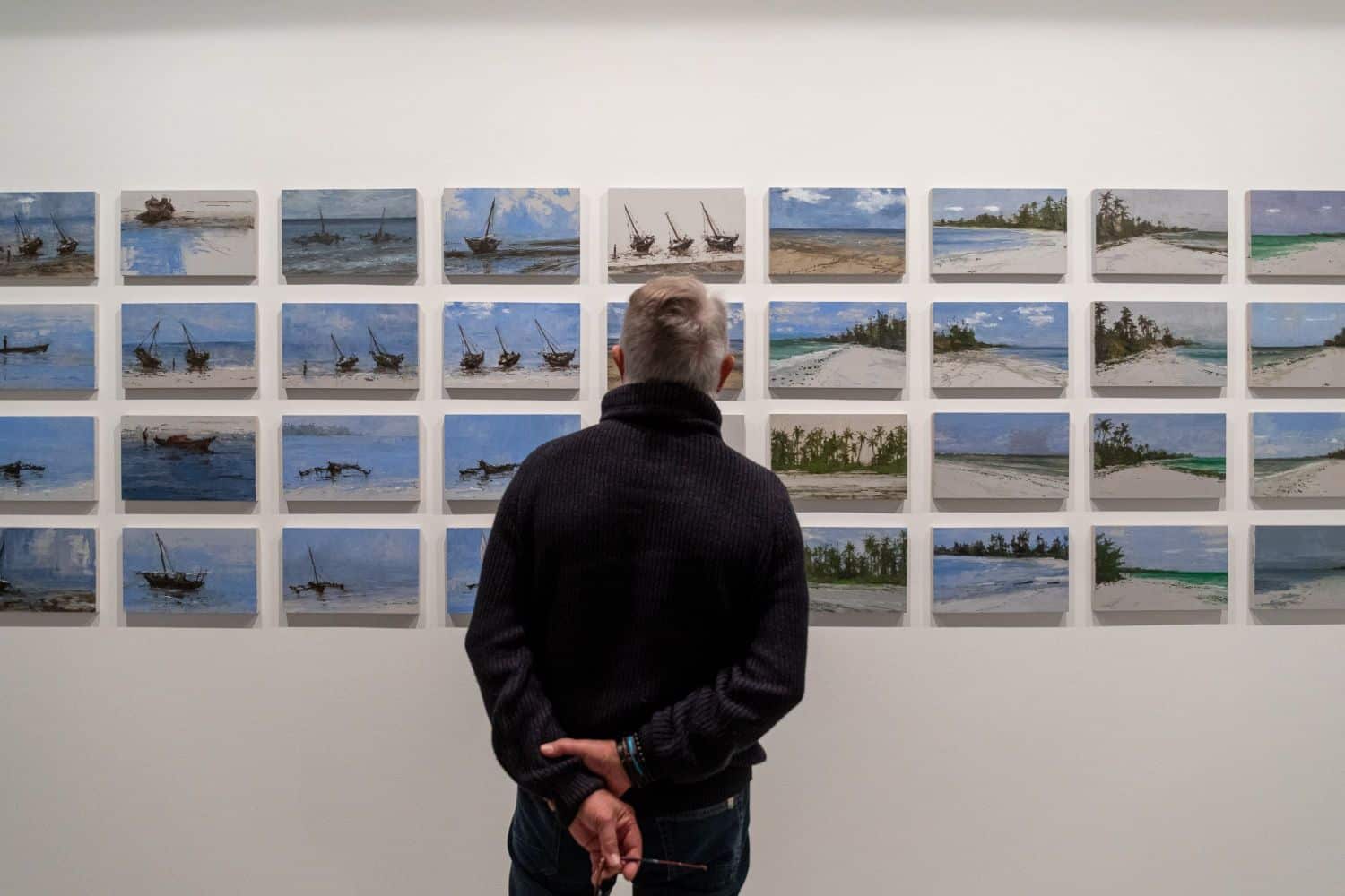 This landscape painting takes the viewer to the coasts of Tanzania on the Indian Ocean, the source of the artist’s inspiration. This oil on wood is part of a 40 artworks series intitled Marinas which first has been publicly presented as an installation for the exhibition África, el paisaje inesperado (December 2020 – March 2021), Calo Carratalá’s solo show at Bancaja Foundation (Sagunto, Spain). To purchase several paintings of this series, contact us.