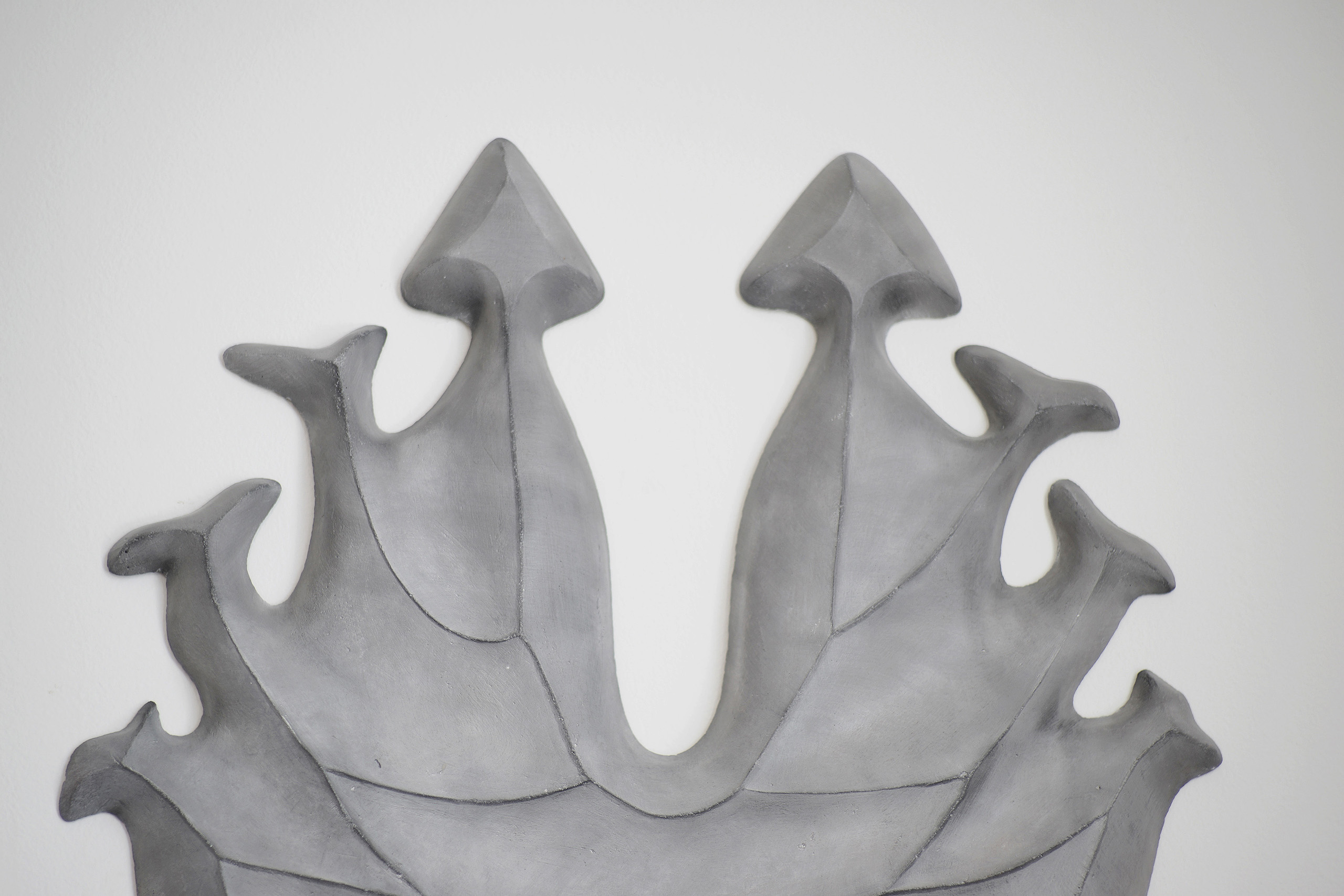 This wall sculpture is part of a series of works focused on the warrior archetype, blending ancient shamanic traditions with futuristic dynamism to explore themes of inner strength and personal evolution. Through the sculptures, Pavlína Kvita explore qualities like respect and discipline. The masks are ritual masks, bearing references to the ancient forces of the natural elements.