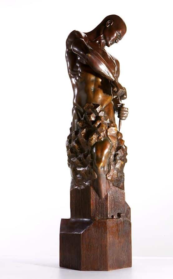 Description: Bronze sculpture. Brown patina made of iron nitrate with a wax finish.