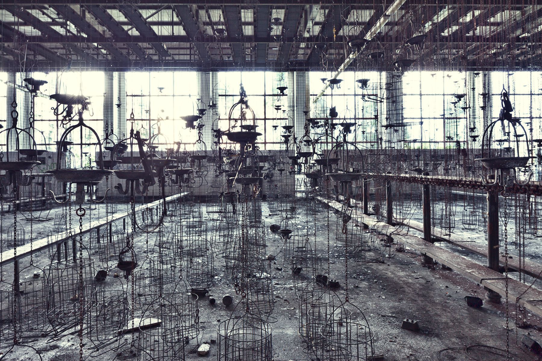 It was taken in the locker room of an abandoned coal mine. All the workers would leave their belongings in these lockable metal baskets. As much for safe-keeping as much a means of knowing who might not have made it back up from the mine.