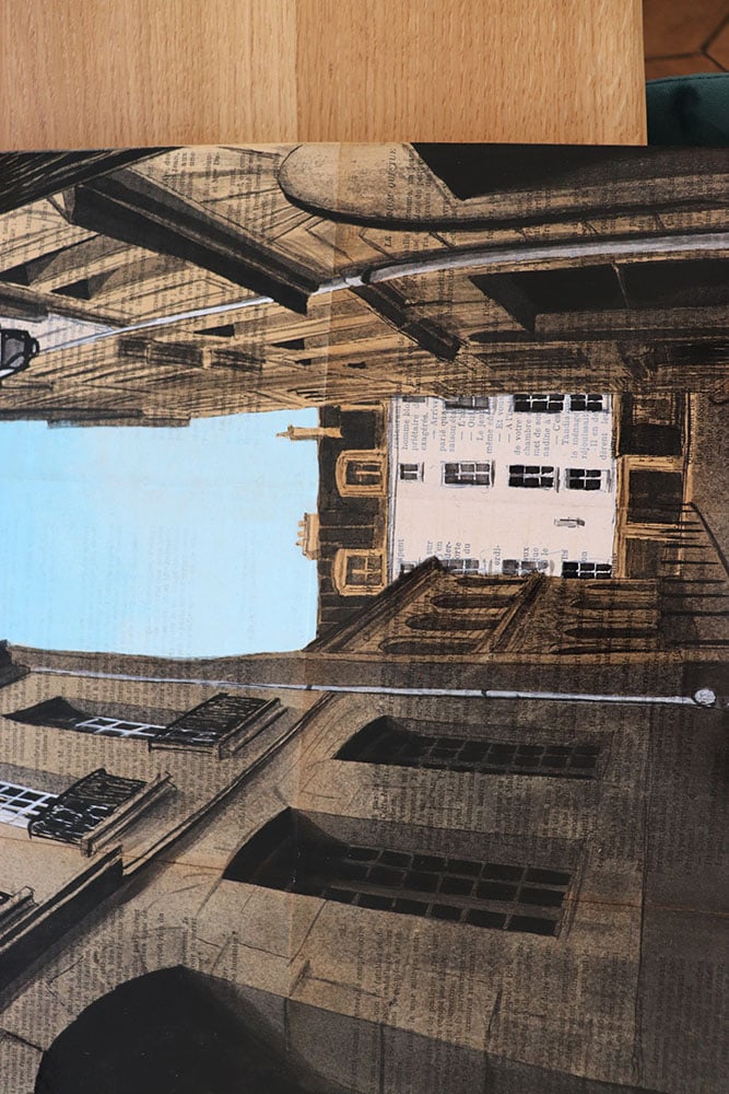 Megacities are the artist’s favorite subject. Through his paintings, Guillaume Chansarel attempts to capture the city’s graphic identity, as a photographer would press the shutter button on his camera. The uniqueness of the artist’s work lies in the realistic aspect of his work but also on the original use of an innovative support: pages of print from antique books onto which he draws and then paints, and consequently which tells a completely new story.