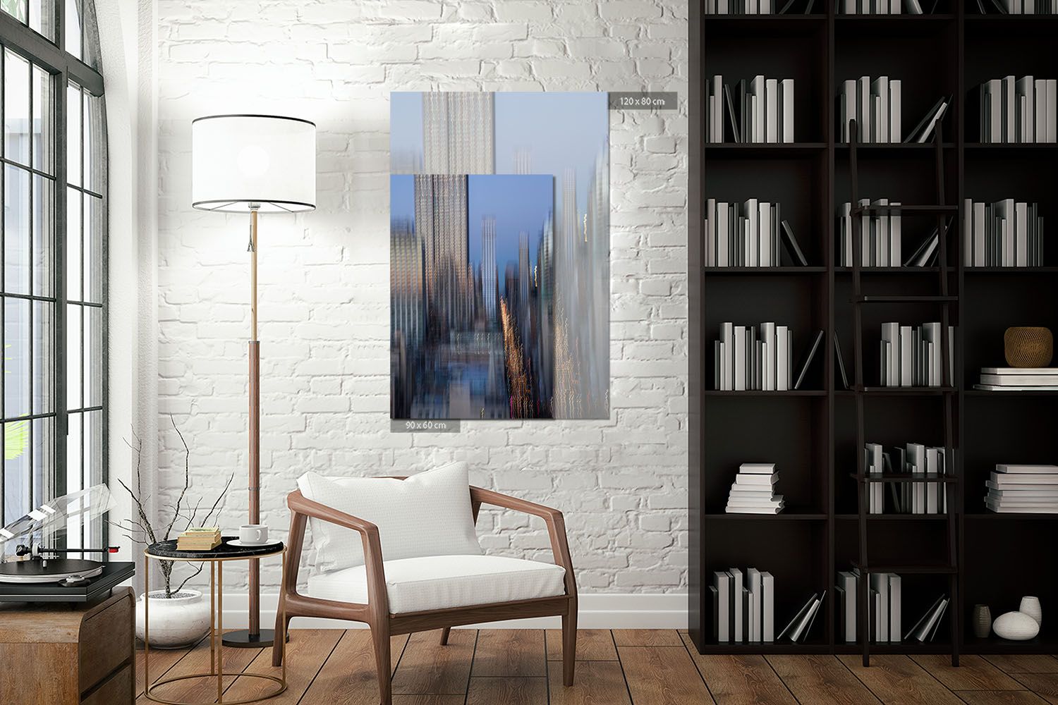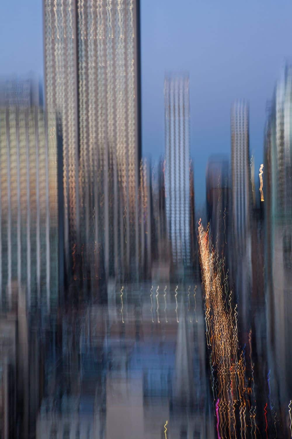 What makes Xavier Dumoulin’s work unique revolves around his “bougé volontaire,” a blurring treatment which helps to bring out the verticals, the height and the perspectives of the skyscrapers “like an impression left after a dream.” The artist is looking to grasp the essence of these urban landscapes by abstraction.