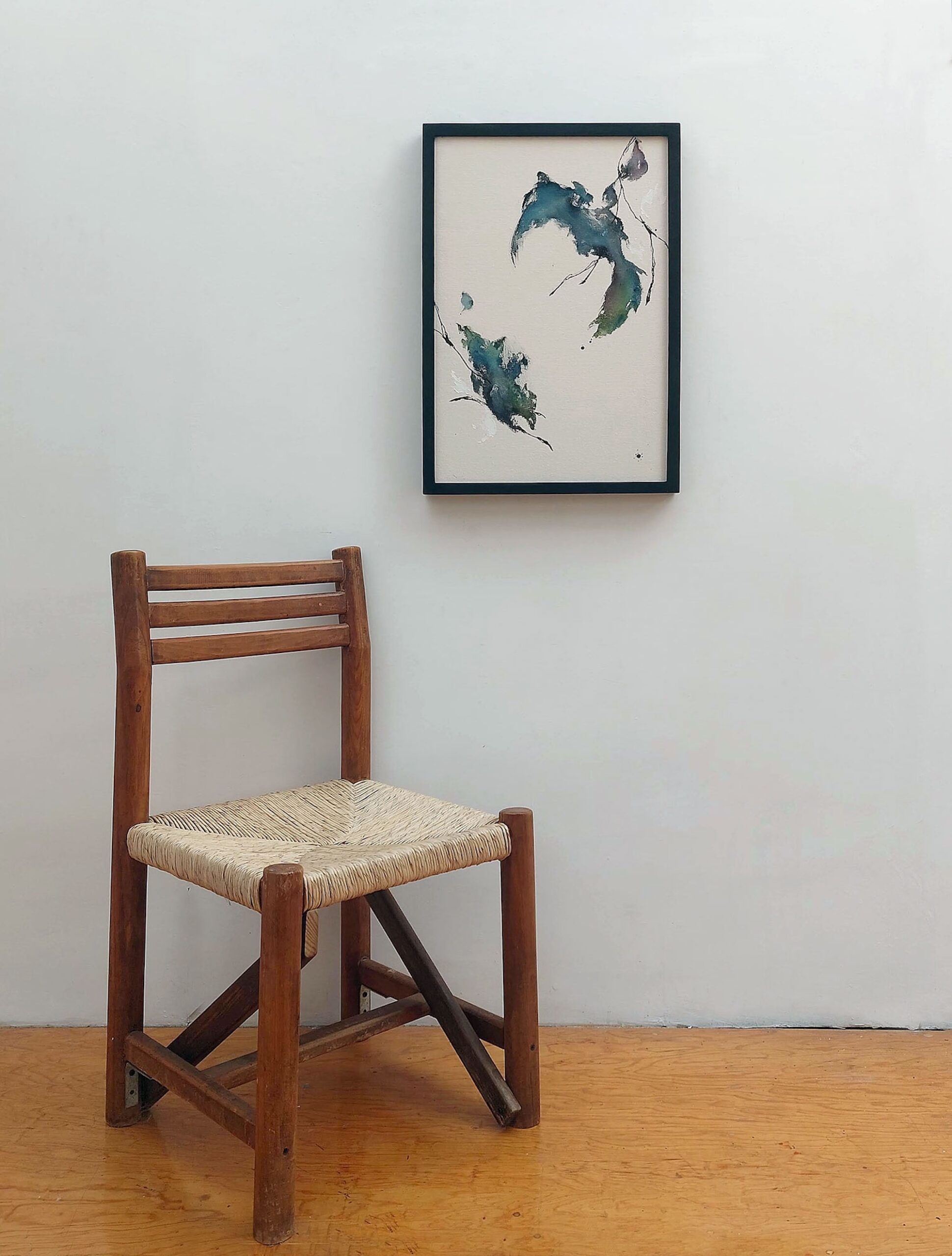 Abstract shapes and patterns complement the paintings, evoking natural elements such as leaves, bird wings and buds. However, Maho Maeda’s works are not representations or imitations of nature, but rather personal interpretations of the sounds of nature materialized in a visual form and a concrete medium.