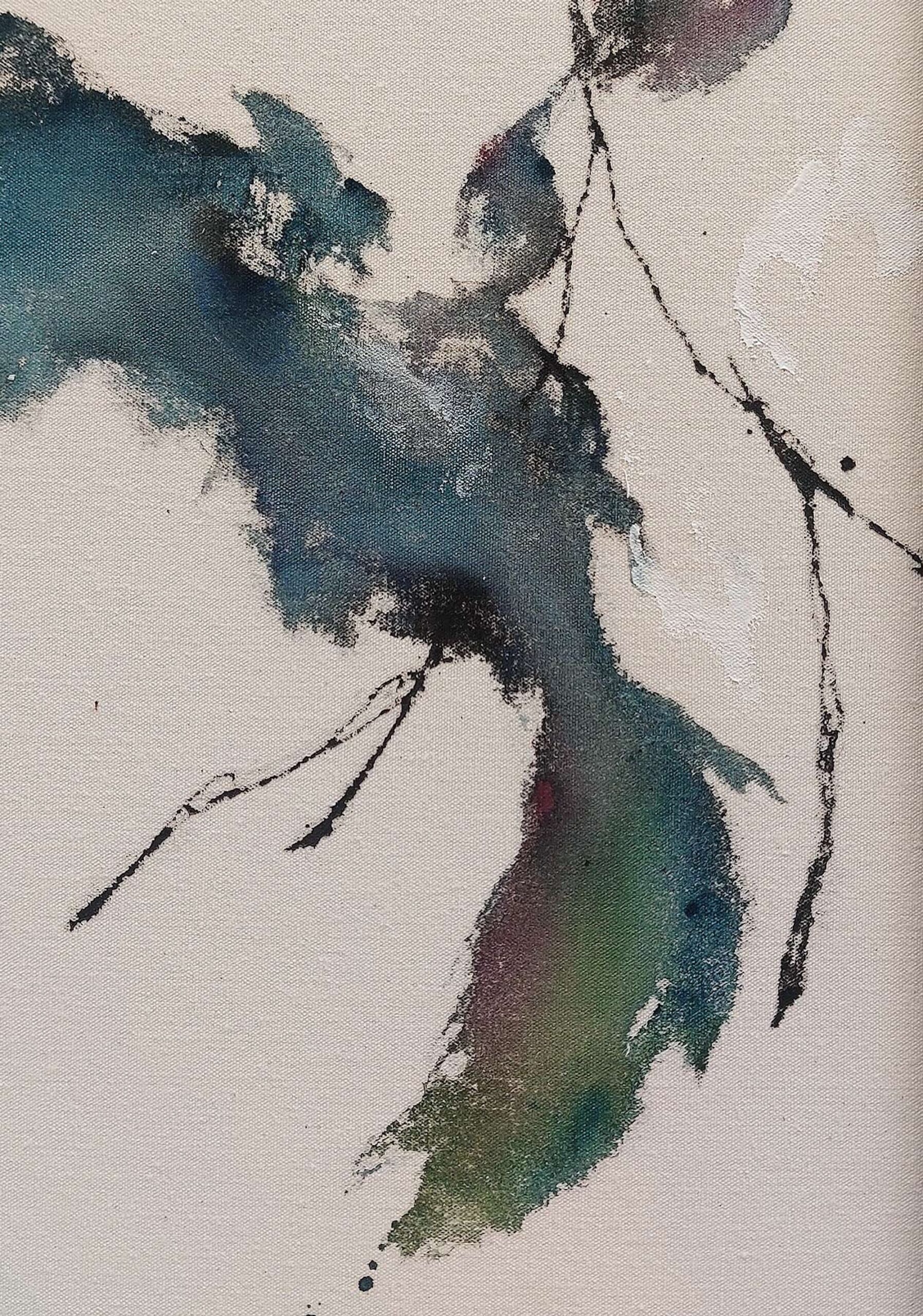 Newborn sound #98 is a work by the Japanese artist Maho Maeda. The artist likes to experiment with different mediums and techniques; here she mixes acrylic paint with ink and coloured pencils.