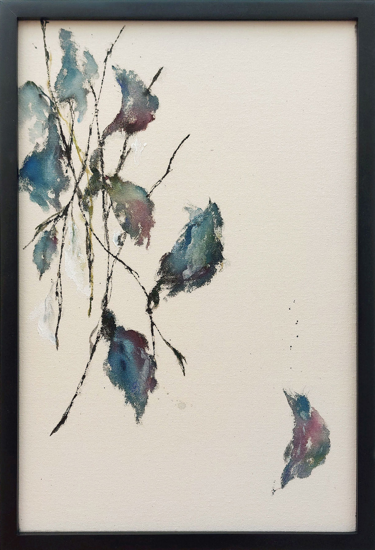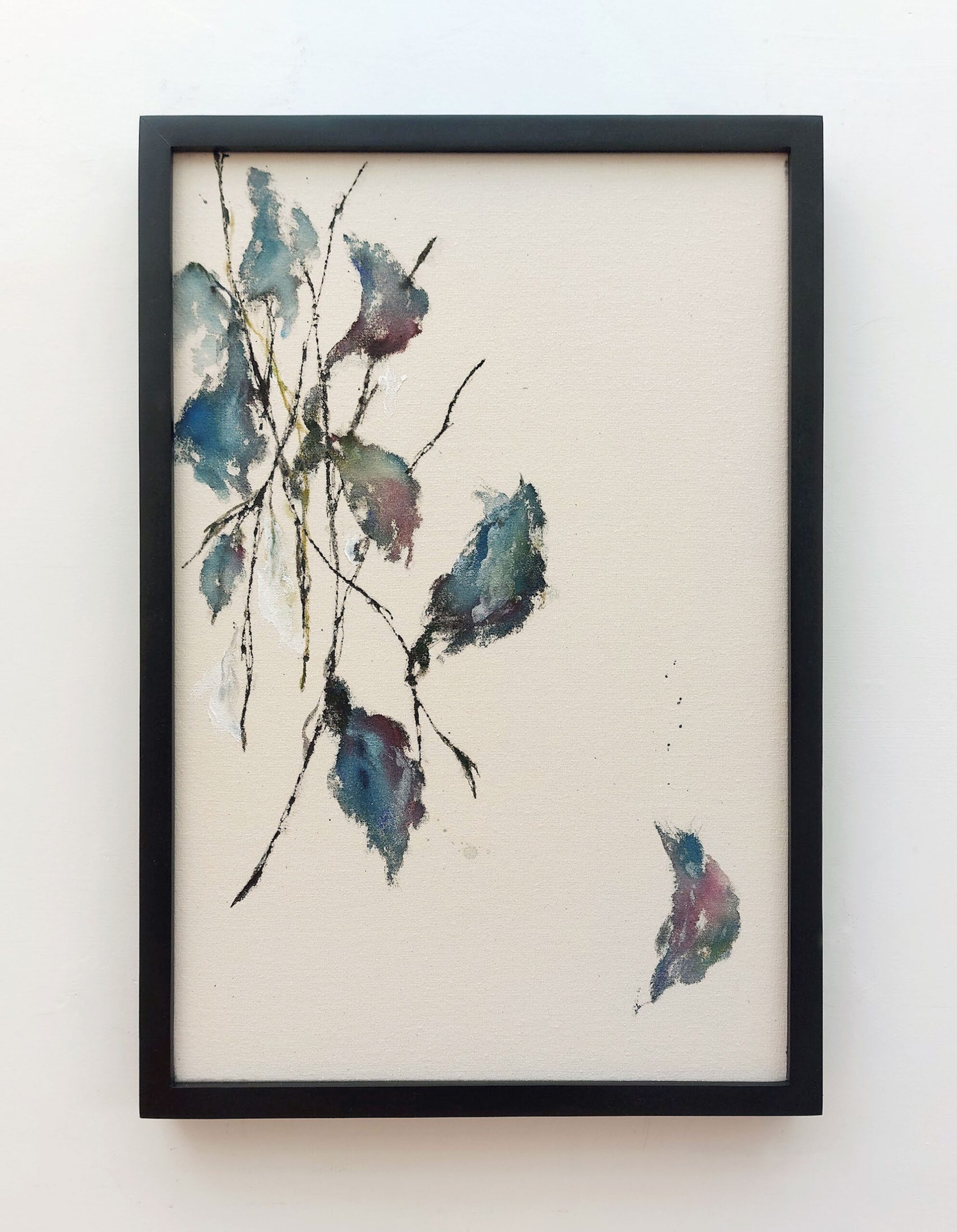 Abstract shapes and patterns complement the paintings, evoking natural elements such as leaves, bird wings and buds. However, Maho Maeda’s works are not representations or imitations of nature, but rather personal interpretations of the sounds of nature materialized in a visual form and a concrete medium.
