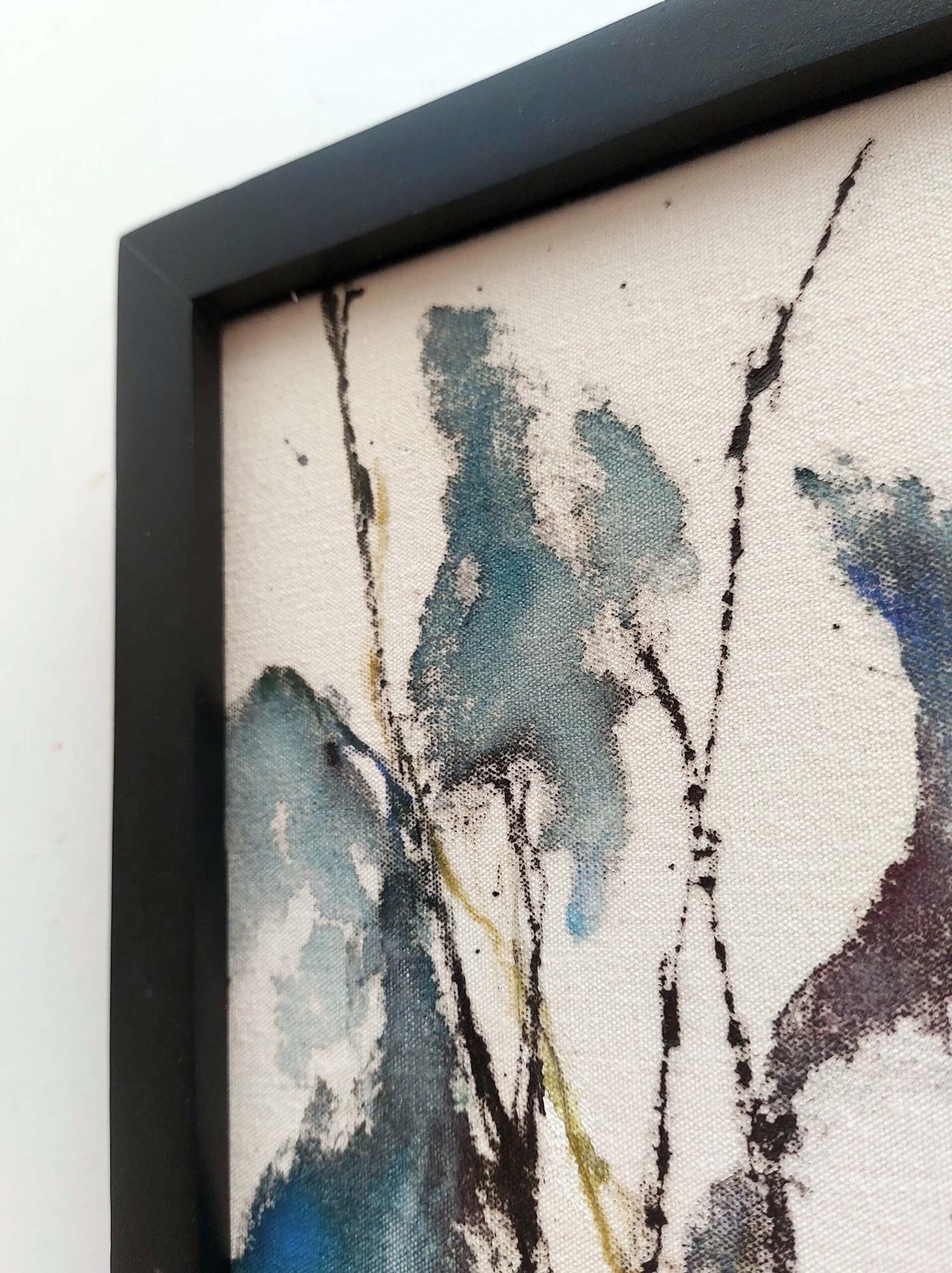 The artwork is sold with a wooden frame that is part of the artwork itself. The indicated dimensions include the frame.