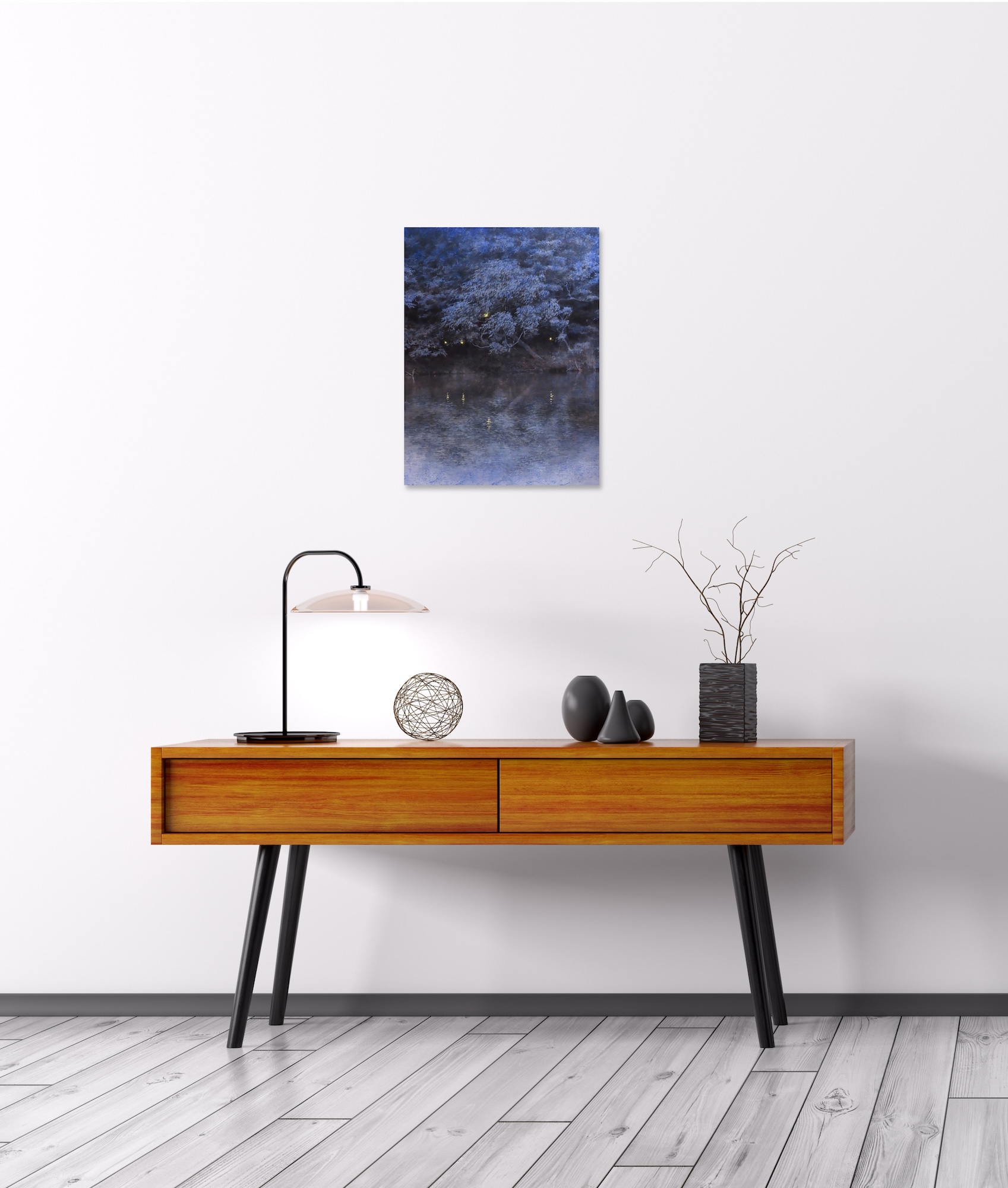 In the Nightfall series, Shoko Okumura explores the silent, enigmatic beauty of the forest plunged into darkness. True to her spiritual and contemplative approach, the artist transforms this nocturnal landscape into a metaphor for human fears and hopes. Her paintings, imbued with calm and mystery, invite us to meditate on the light within – the light that continues to shine even in the heart of darkness.