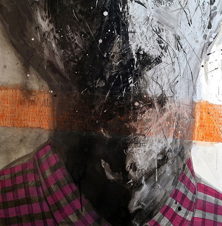 Lines constitute the fundamental unit of his portraits: “I work with lines” he says. “When I paint a portrait, I draw each line and each brushstroke using the principles of calligraphy. Each line has a life, and all together – with their strength, movement and rhythm, they make up an energetic space.” This energetic space magnetically draws and holds us, inviting us to decipher this nervous writing that seems to have been invented to describe the depths of the soul.