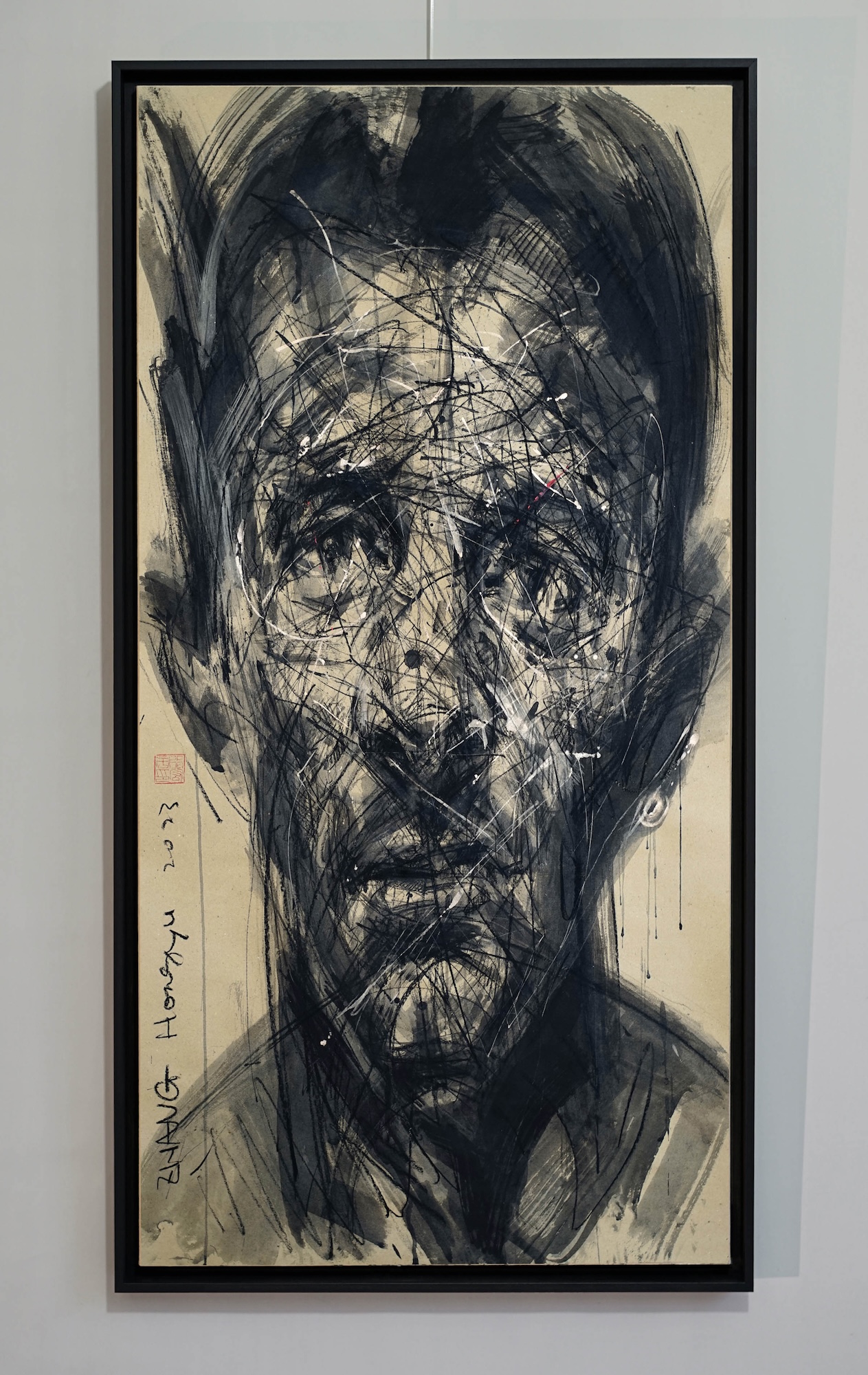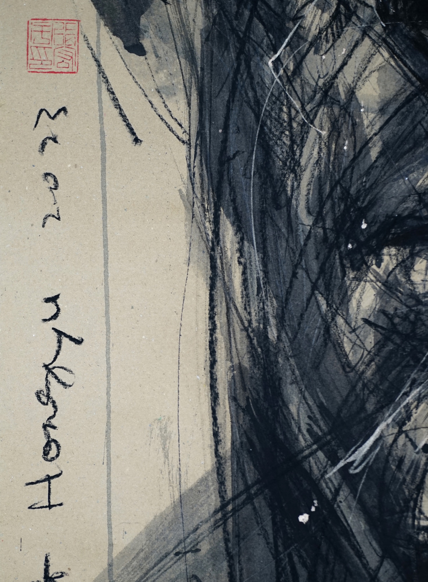 Initiated from a young age to the techniques of calligraphy, Hongyu Zhang has remained faithful to Indian ink and above all, to the expressive power of the line: “I work with the lines” he says. “When I create a portrait, I trace each line and give each brushstroke by applying the principles of calligraphy. Each line has its life, and all together – with their respective strength, movement and rhythm, they compose a space energy.”
