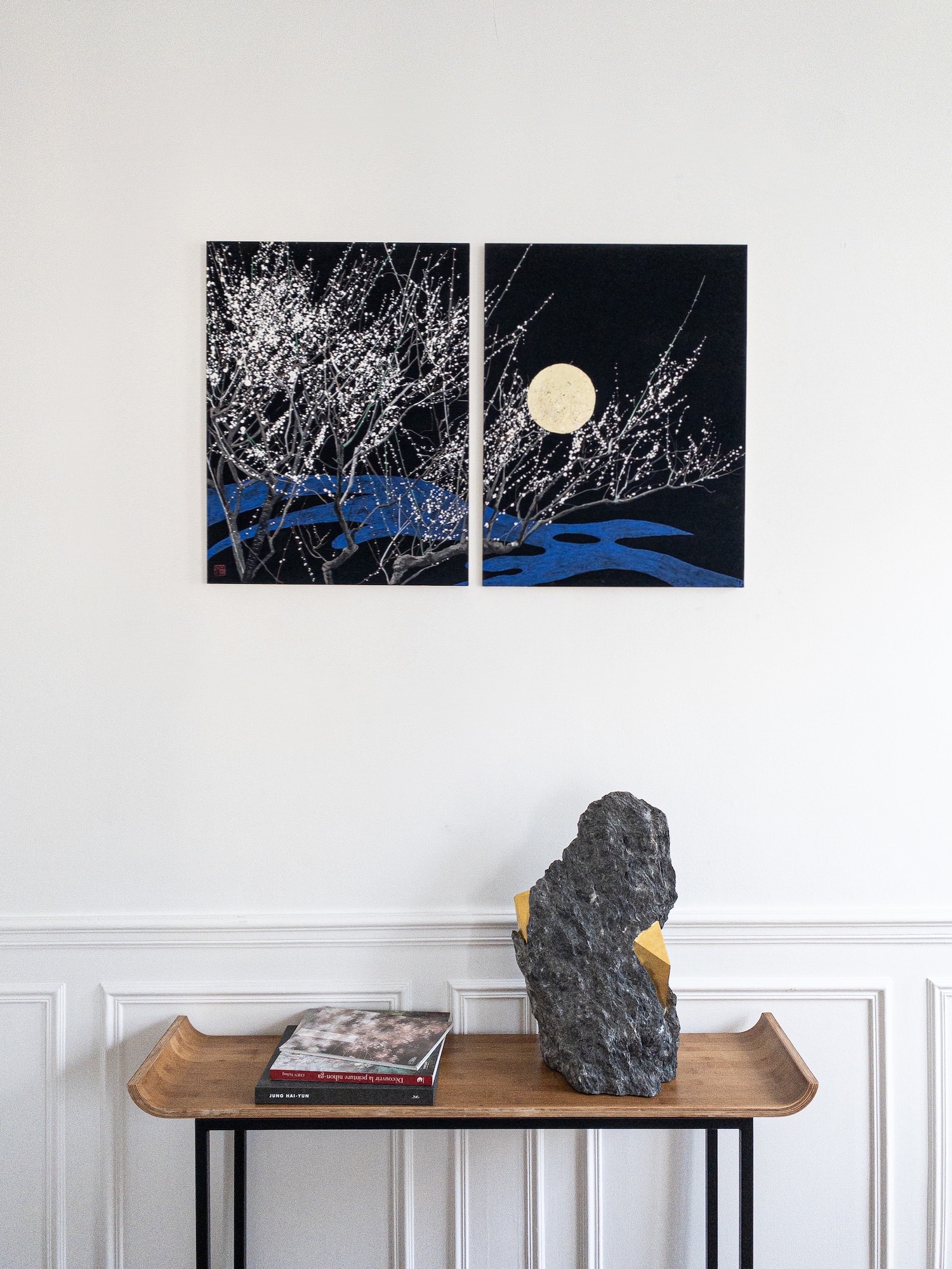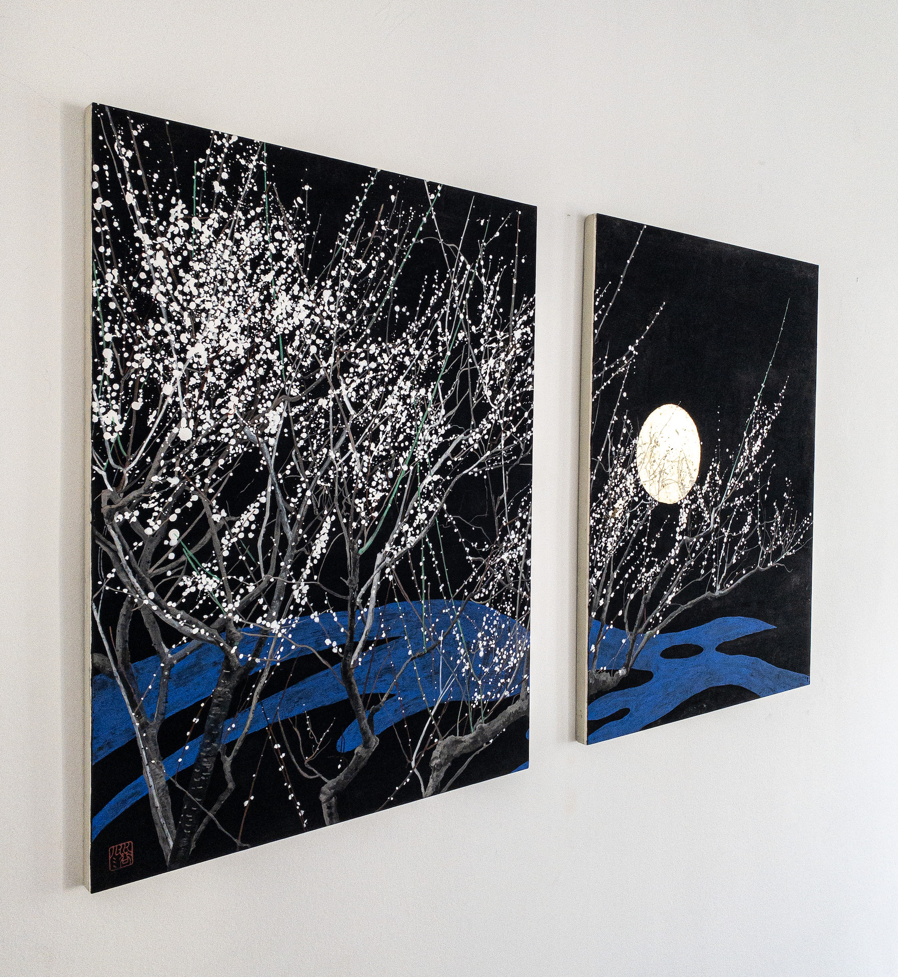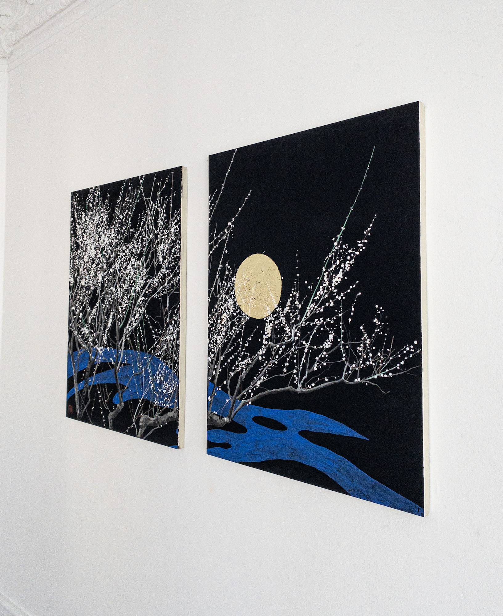 | Tags | black|diptych|gold leaf|Japan|moon|pigment|tree |