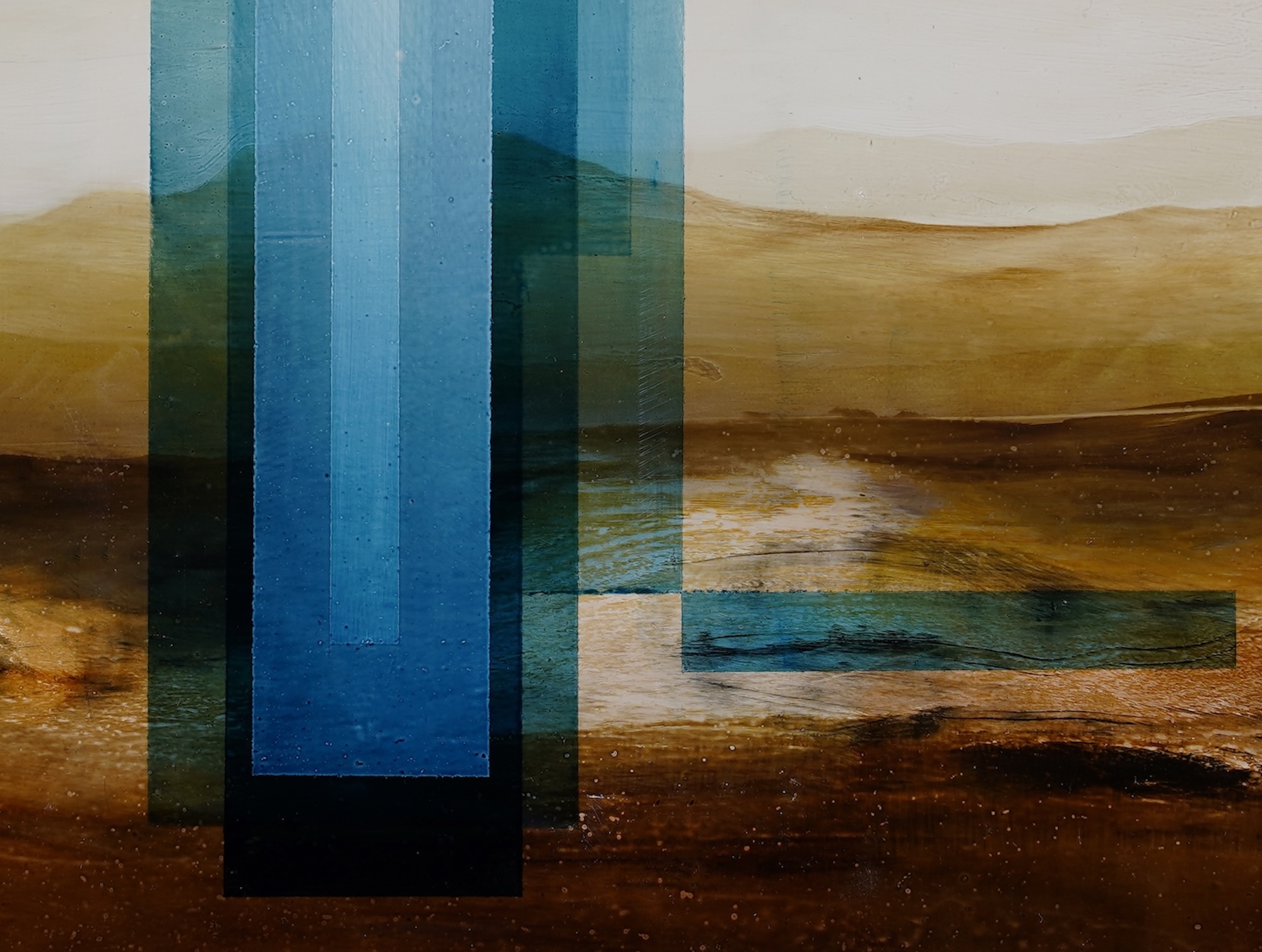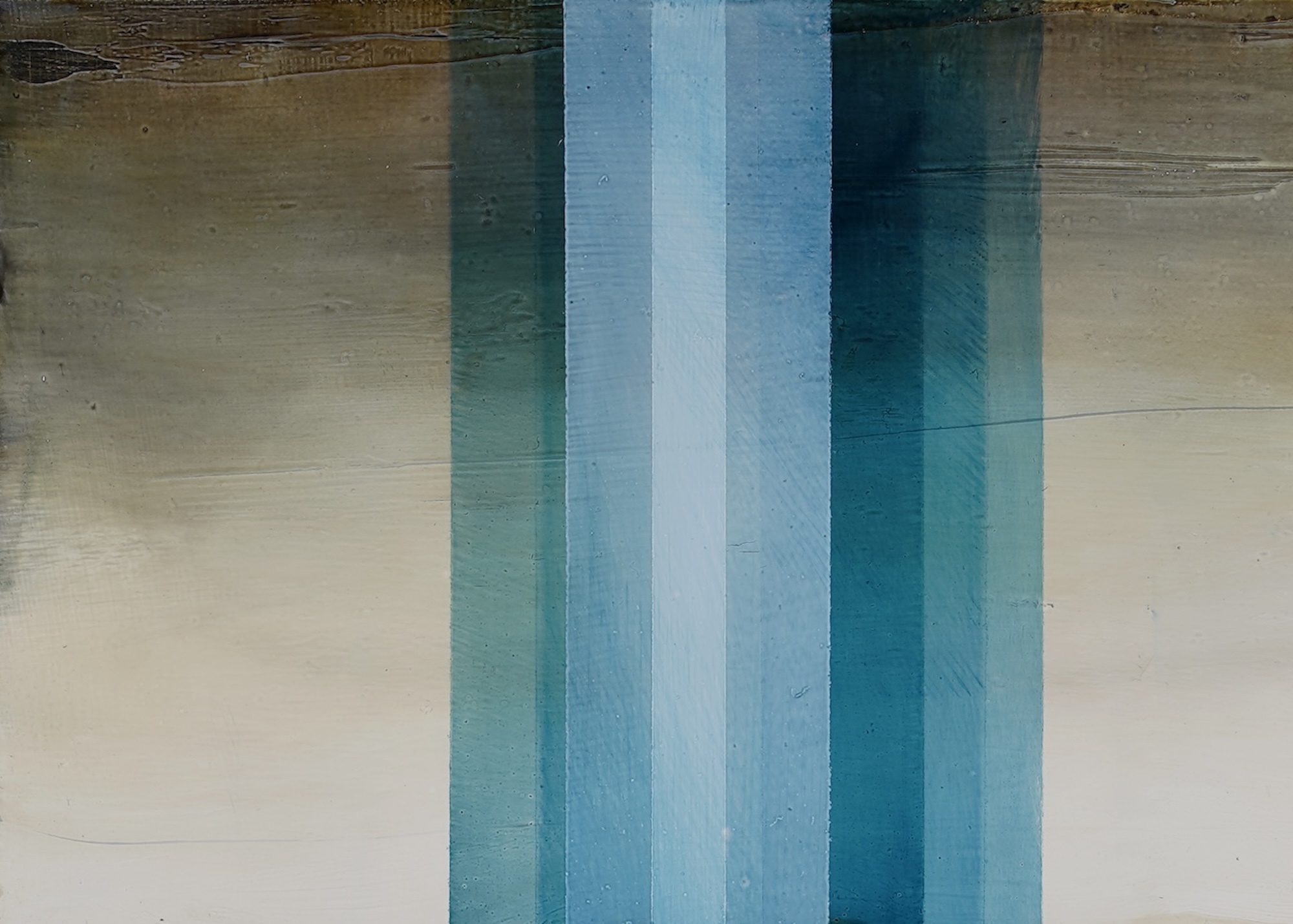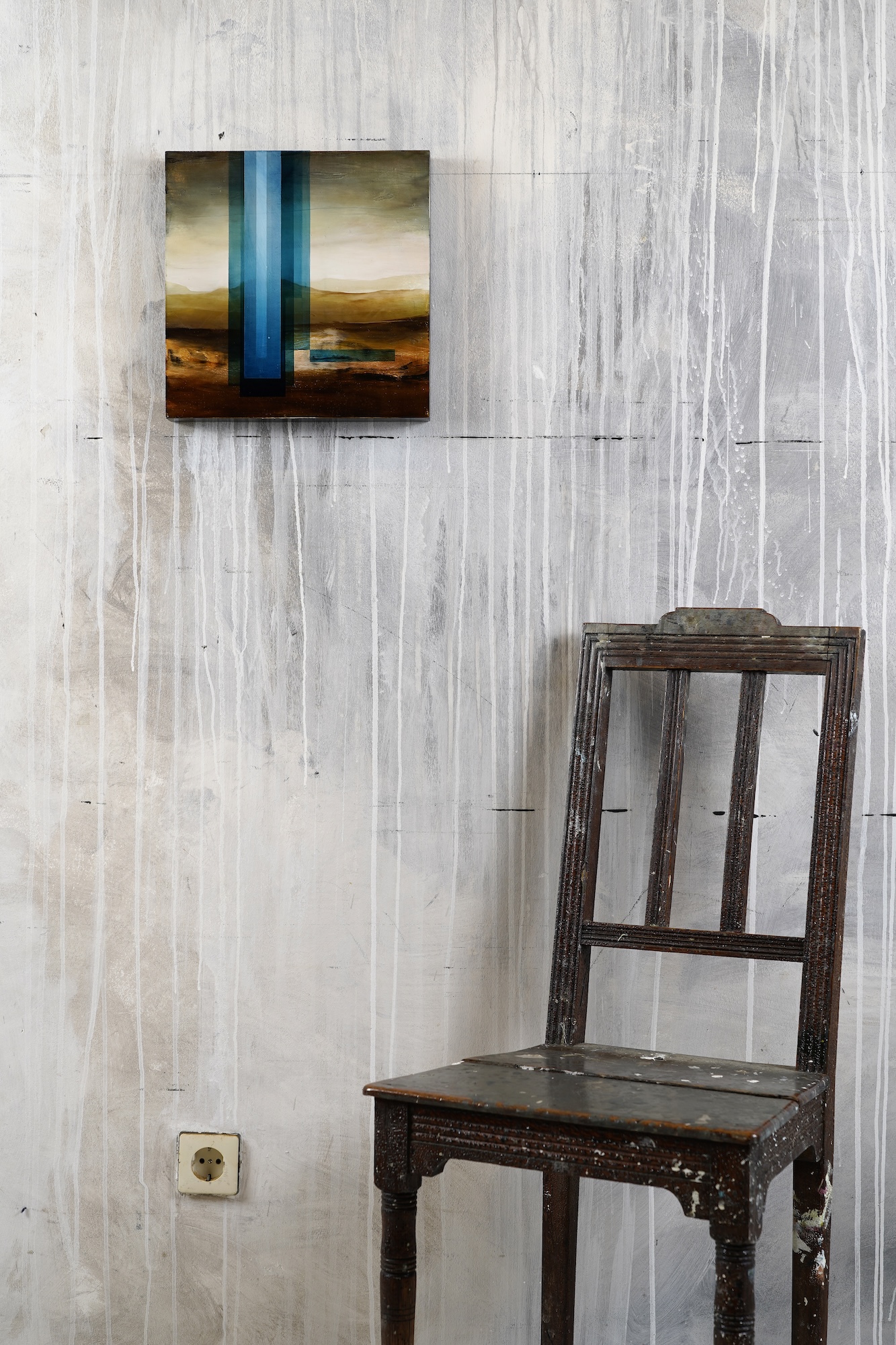 Out of this world IV is a painting by the contemporary artist Joachim van der Vlugt. This oil on wood is an abstract composition, that can be inspired by landscape painting.