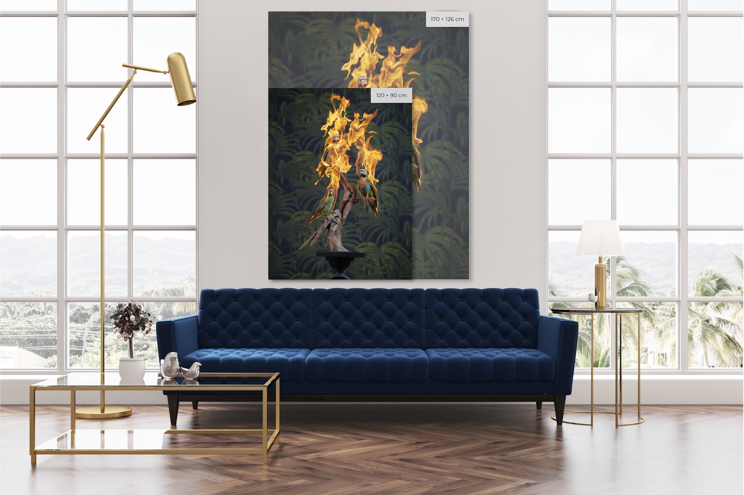 Parakeets is a photograph of the Norwegian artist Christian Houge from the Residence of Impermanence series. The series has earned nine nominations for the Prix Pictet Award (2021) and has been exhibited in several museums dedicated to photography: Preus Museum (Horten, Norway, 2019), Fotografiska Museum (Stockholm, Sweden, 2019), California Museum of Photography (Los Angeles, USA, 2020). The series is on sale for the first time on Artistics.
