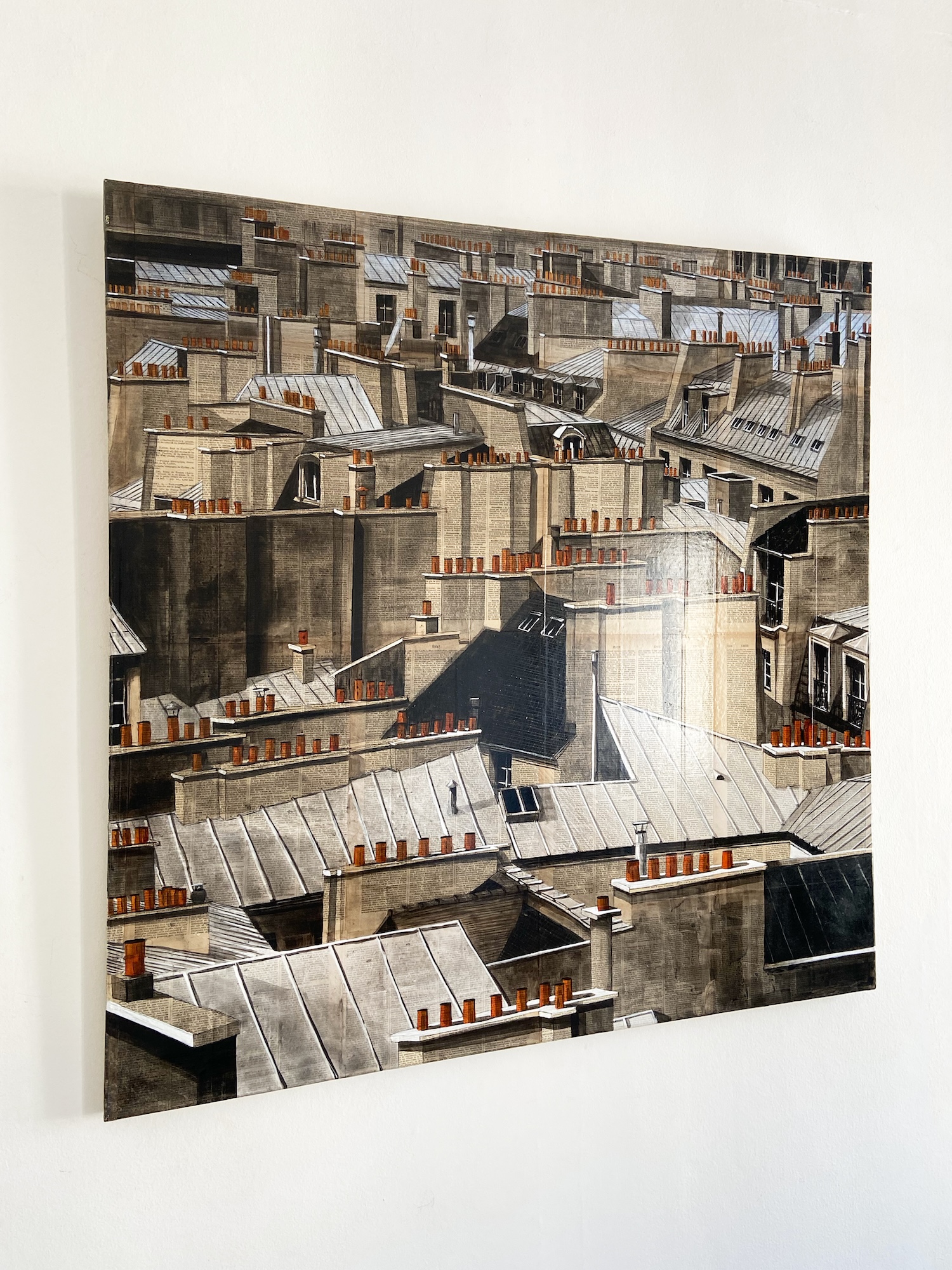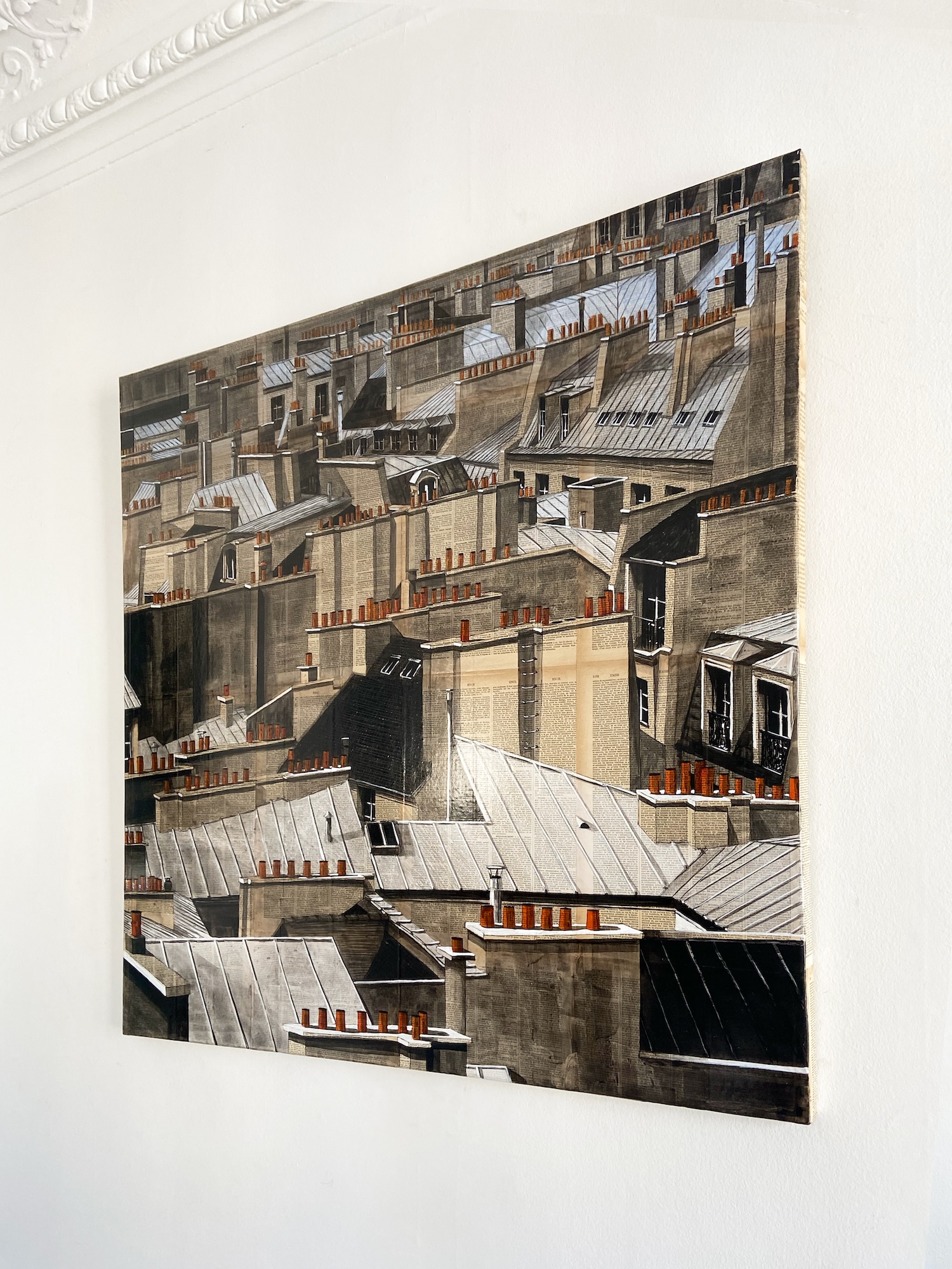 Paris rooftops 4th I is a painting by the contemporary French artist Guillaume Chansarel depicting some rooftops in the 4th arrondissement.