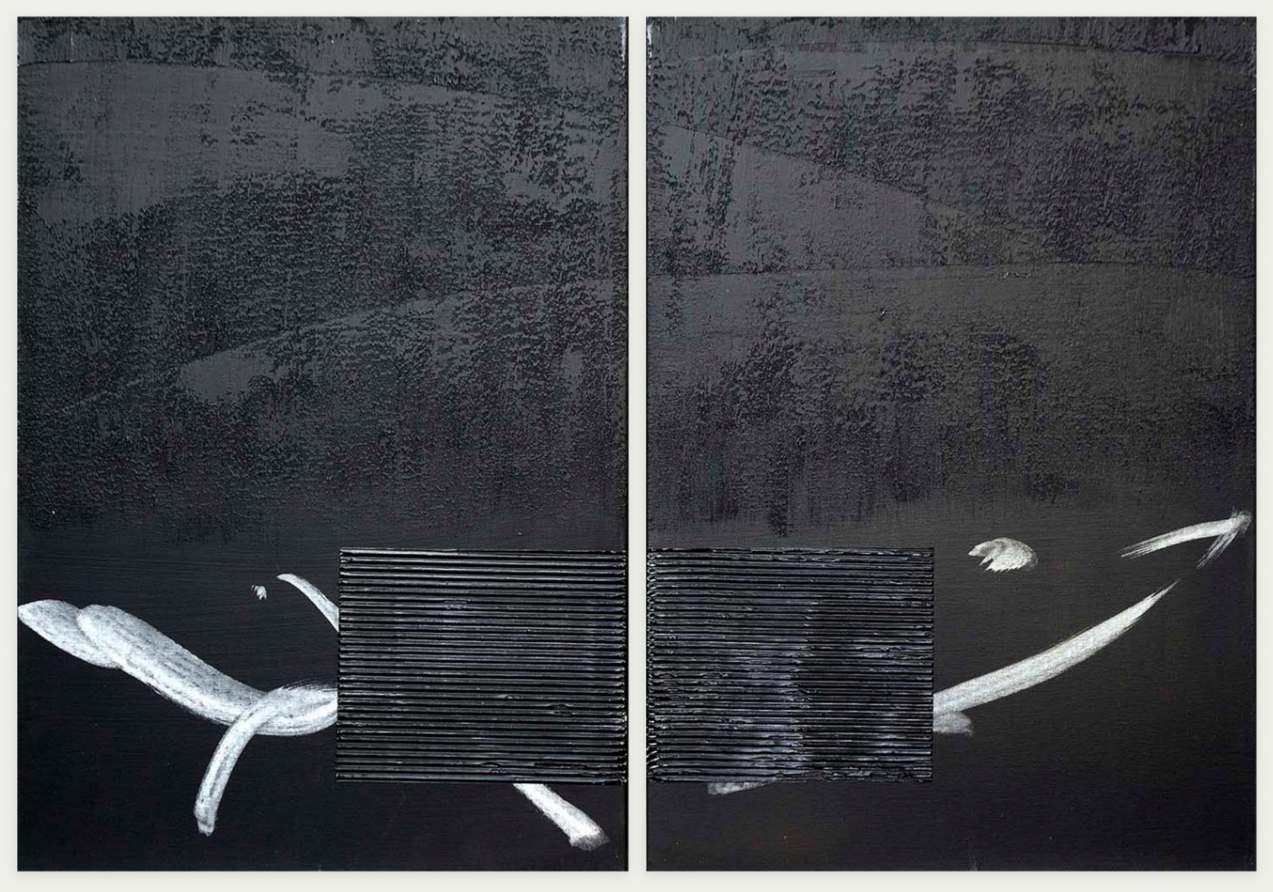 This artwork is a diptych composed of two panels, measuring 70 cm x 50 cm each.
