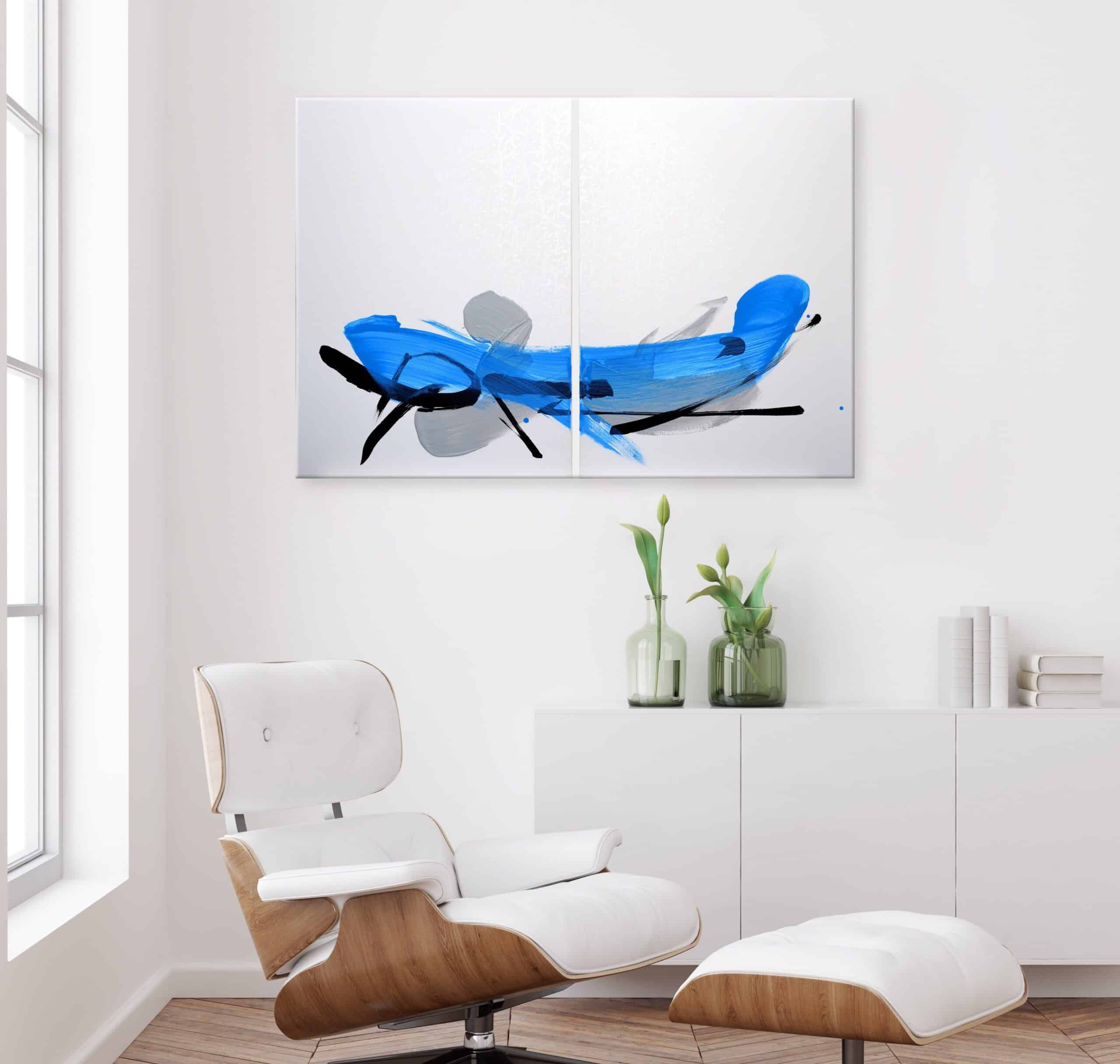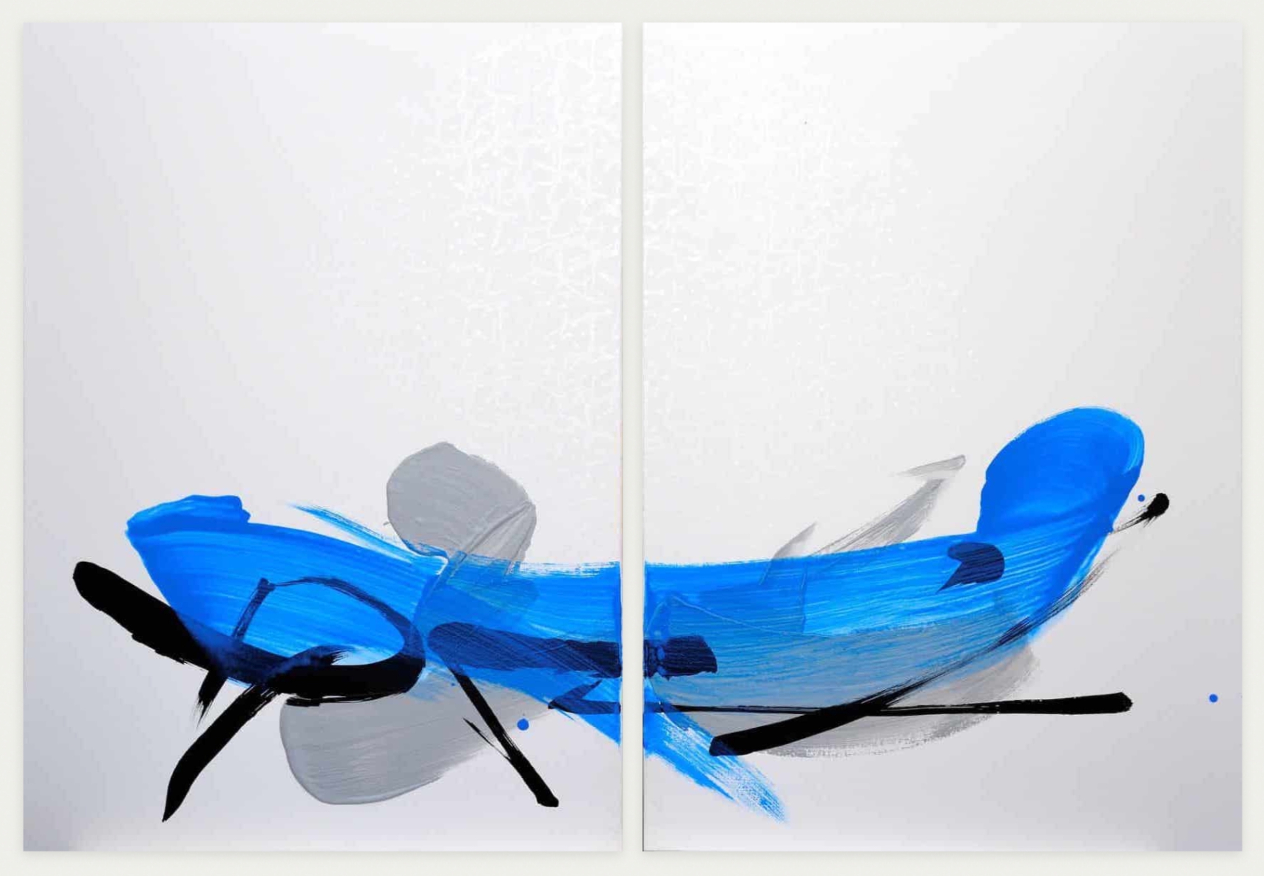 | Tags | Acrylic artwork|blue|calligraphy|diptych|ink|white |