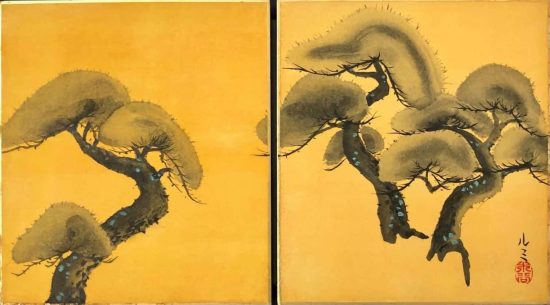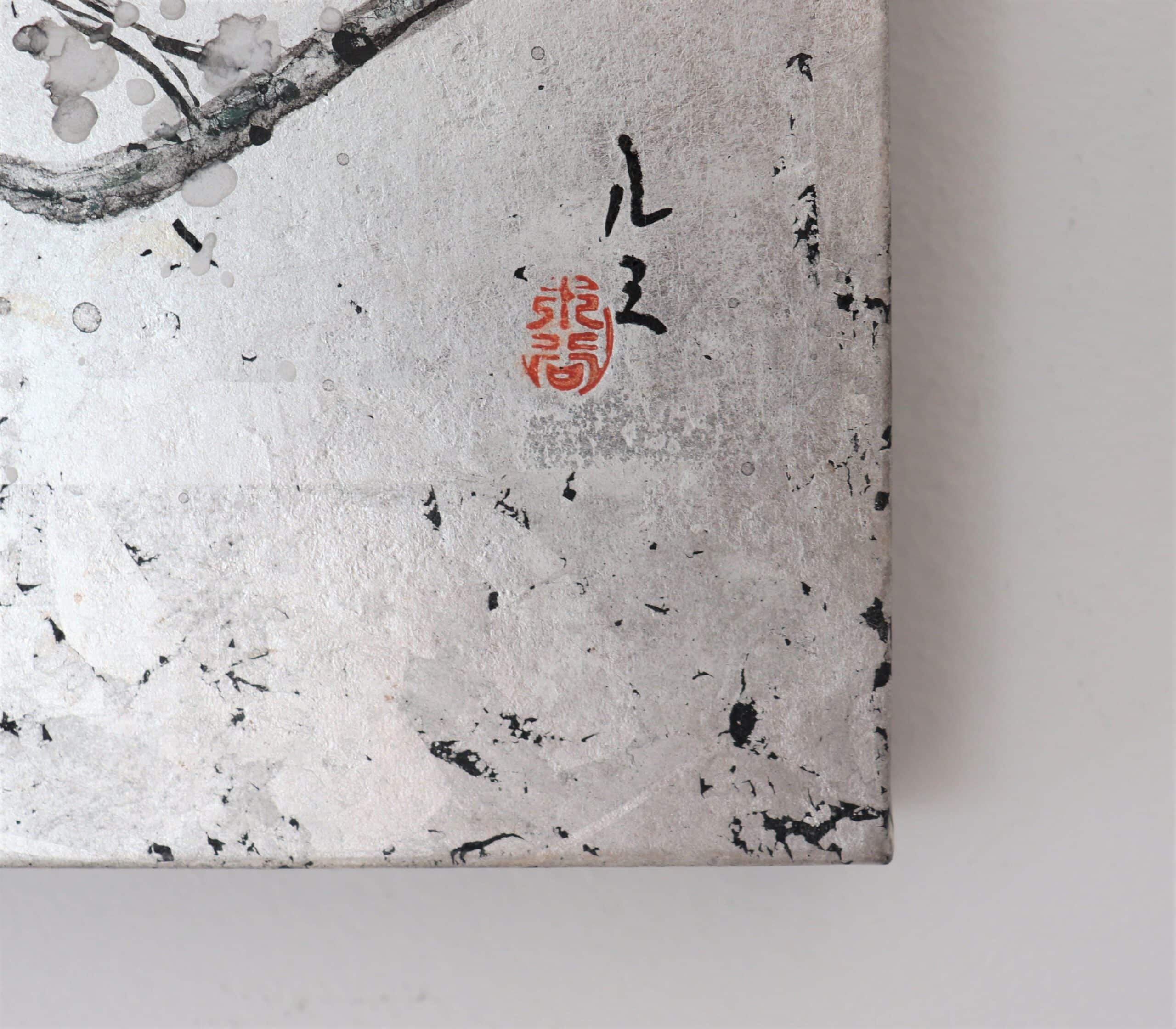 Through her paintings, the artist sublimates these places varying the seasons and times in her several depictions. Plum and cherry blossoms, pines, weeping willows, the artist places a lot of importance on nature and trees in her works of art. This series is characterized by the use of India ink combined with color and the use of gold, copper and silver leaves.