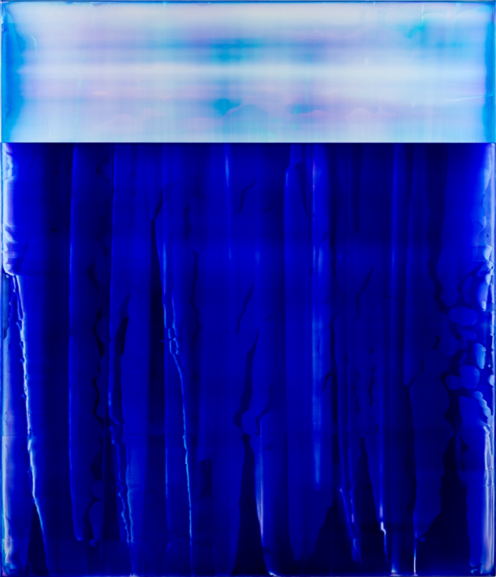 The Point series is a series of paintings which are produced in the studio in the Isle of Lewis. The iridescent light of the island and its landscapes of beaches, cliffs, moors, mountains and lochs provide the painter with a source of inspiration, notably through the use of opalescent pigments and a cooler palette. He states: “I do not actually wish to depict that landscape, but the sense of place, the sense of being there, it has permeated the work.”