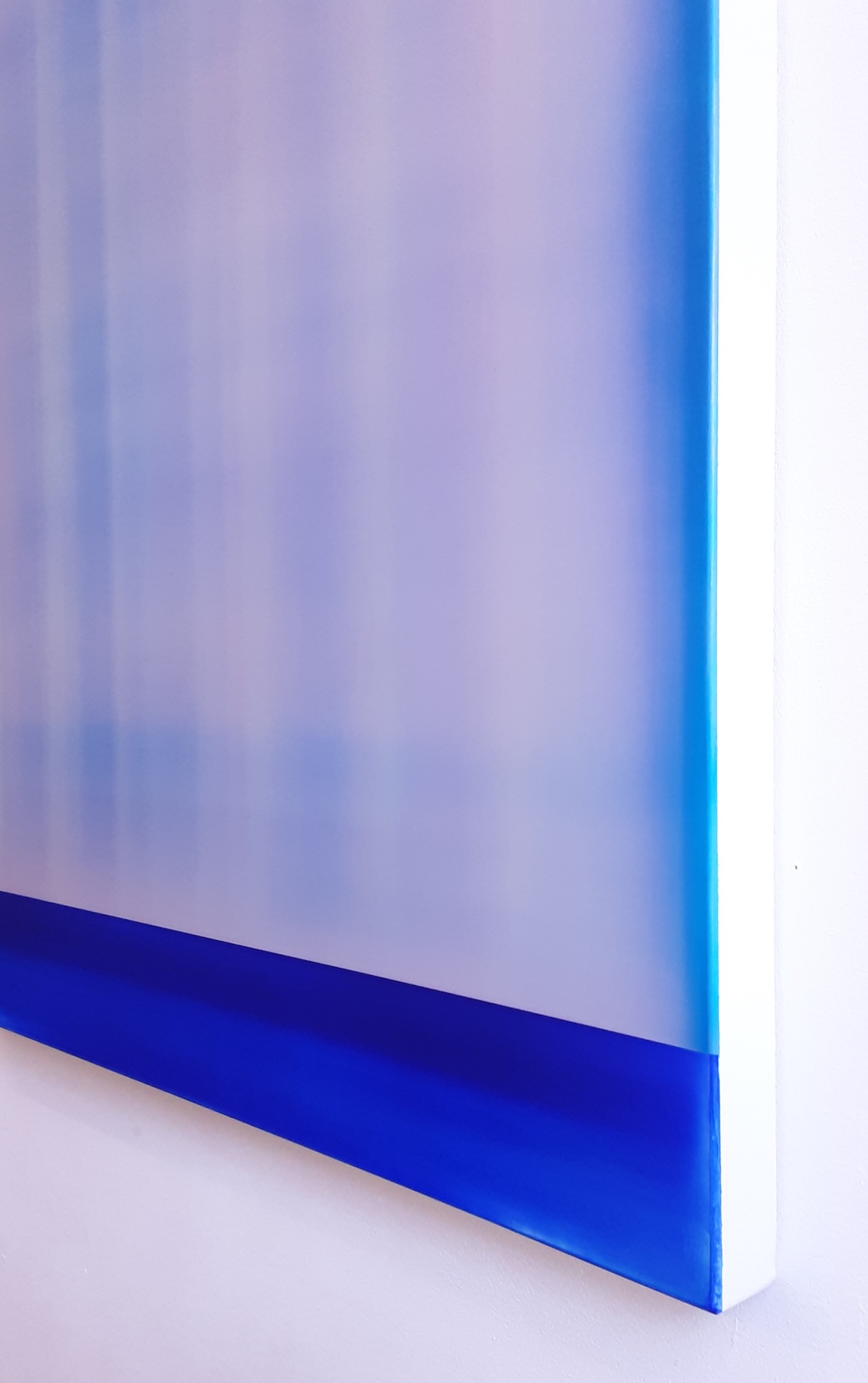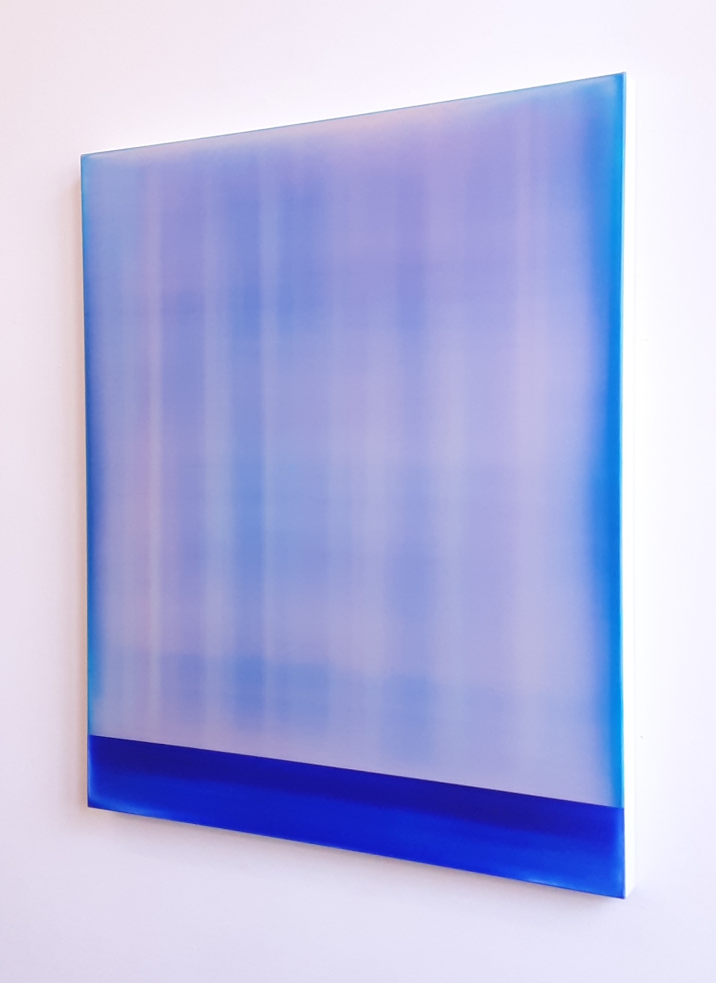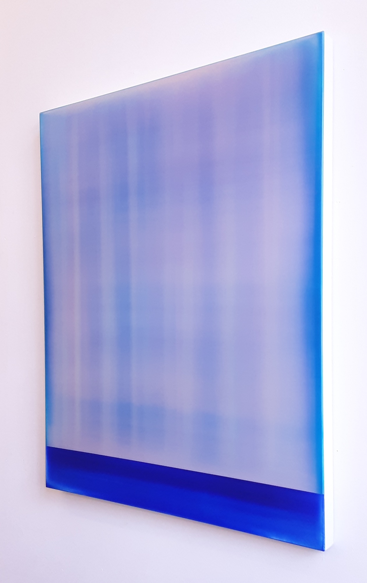 James Lumsden’s abstract paintings explore themes of light, colour and depth. His creative process involves superimposing dozens of thin layers of acrylic paint onto the canvas, worked with specific tools to conceal or bring out traces and marks. Layer by layer, the artist succeeds in creating an illusion of depth and light within the painting, immersing the viewer in a mysterious and seductive universe.
