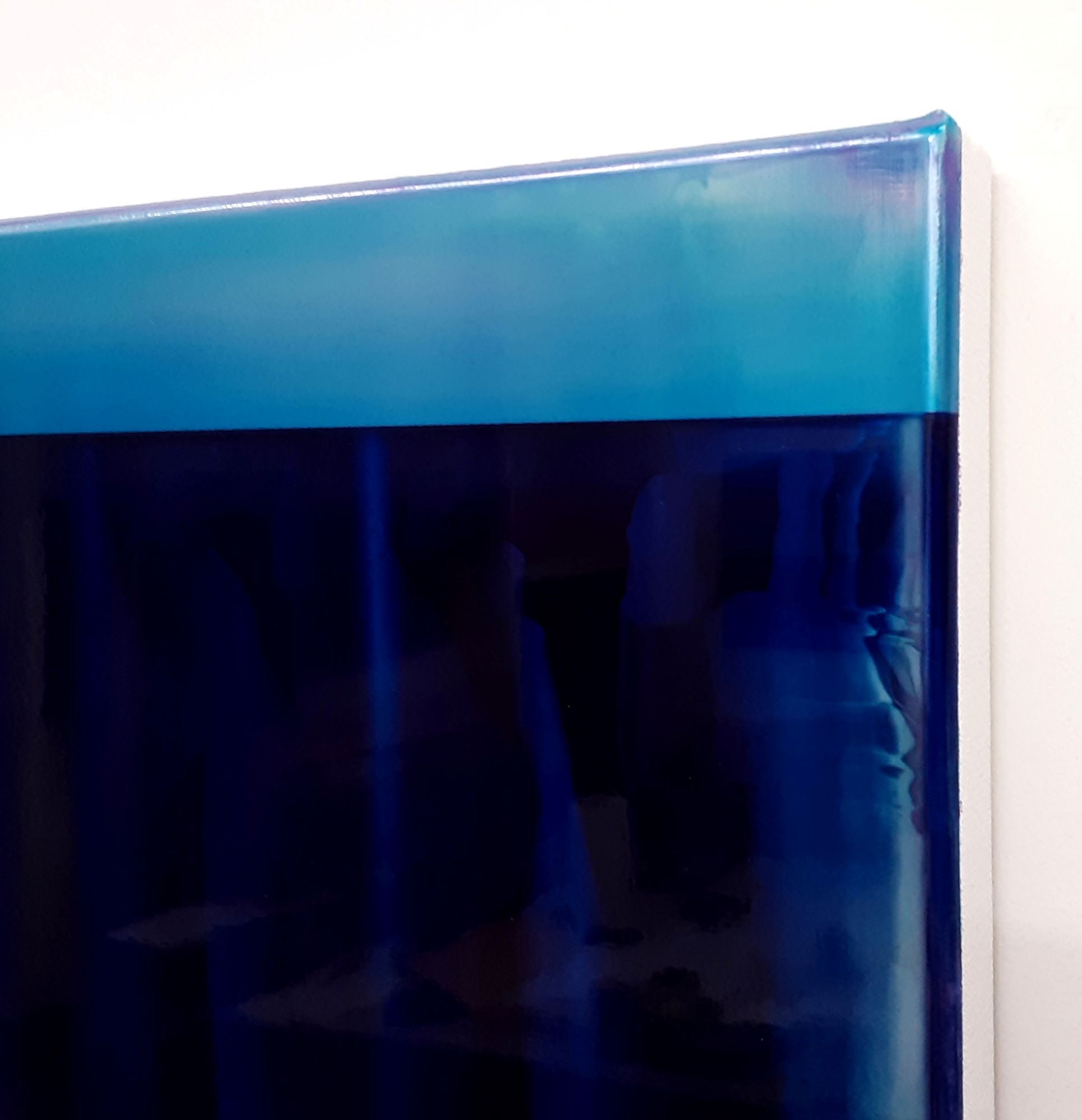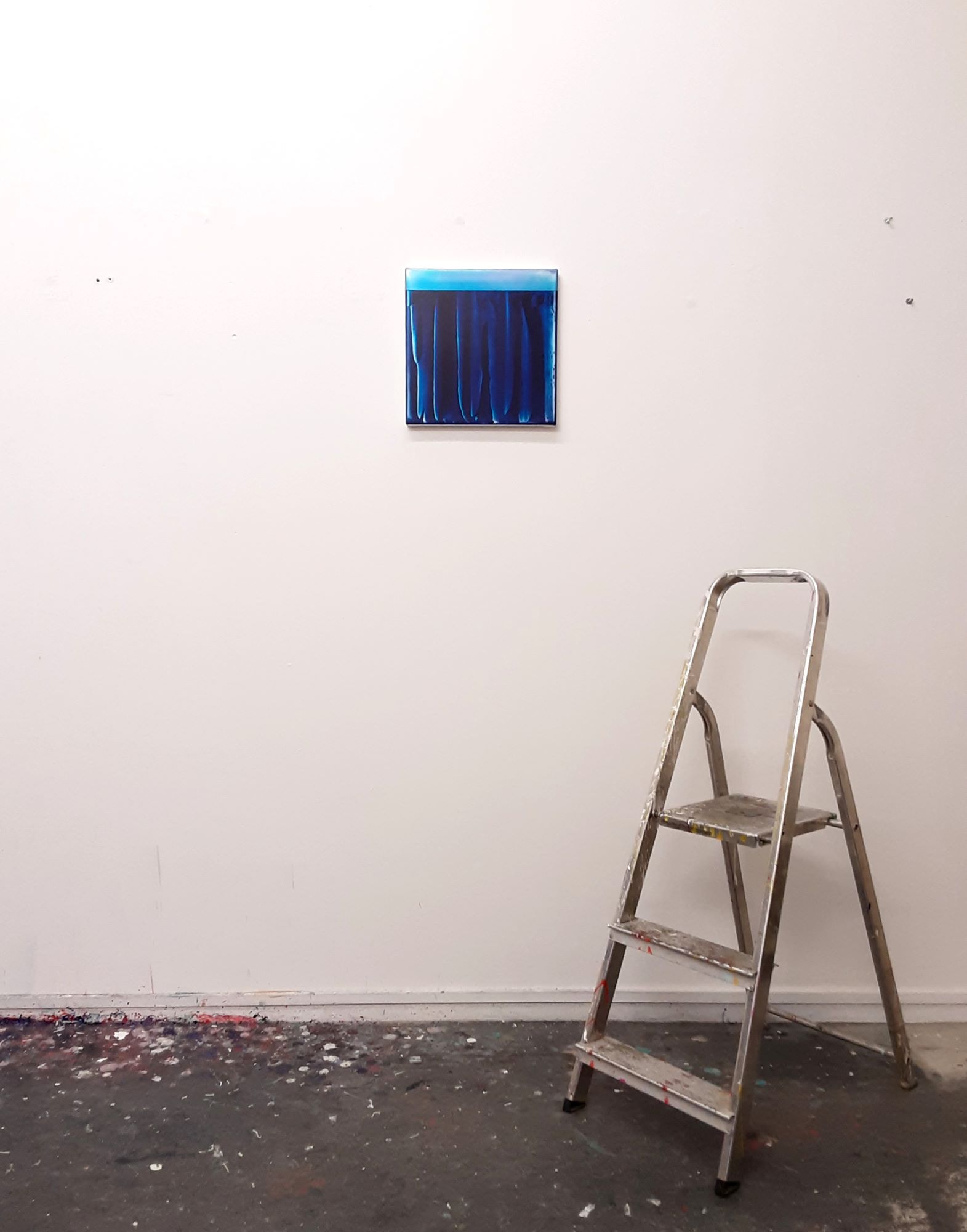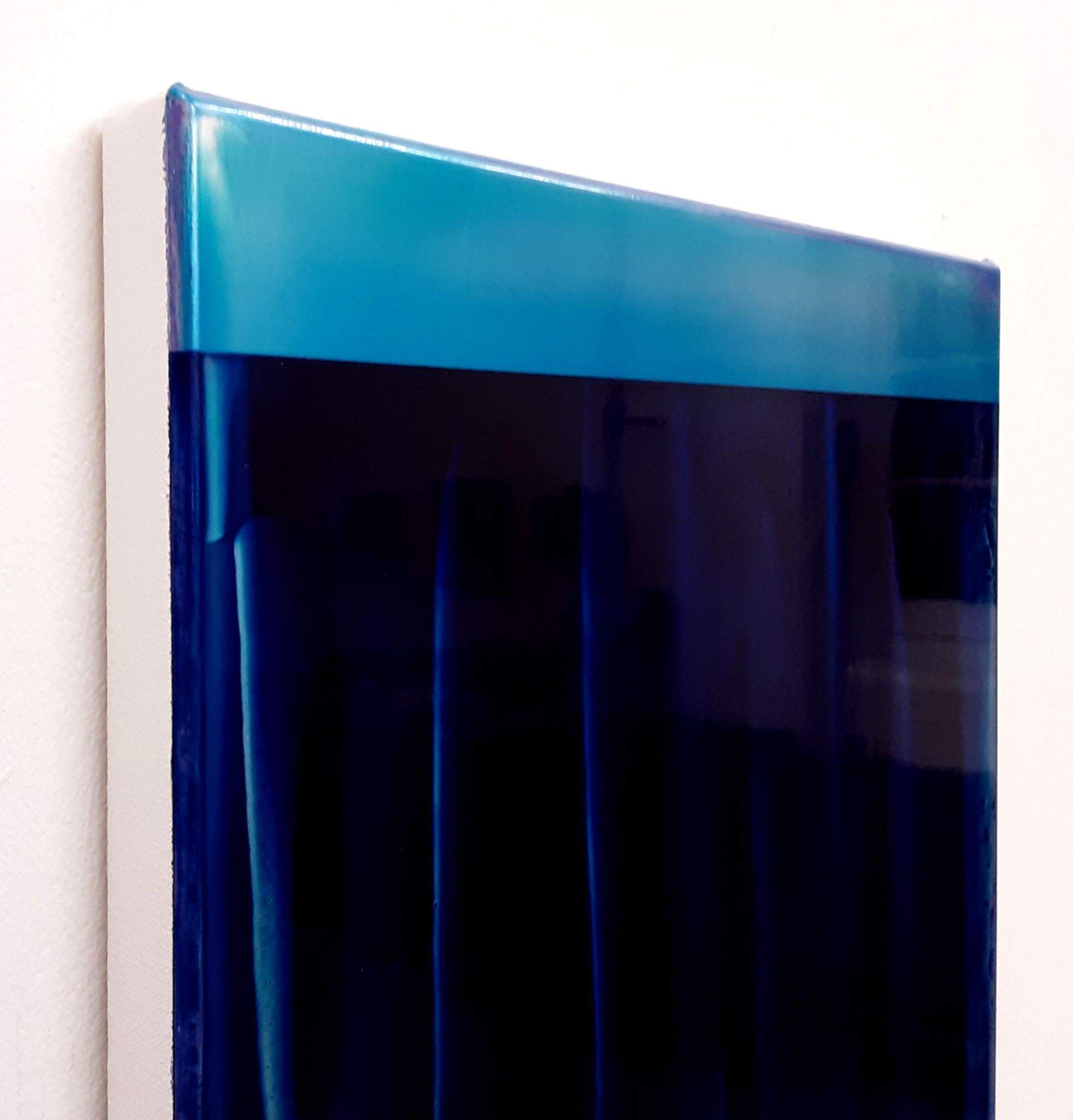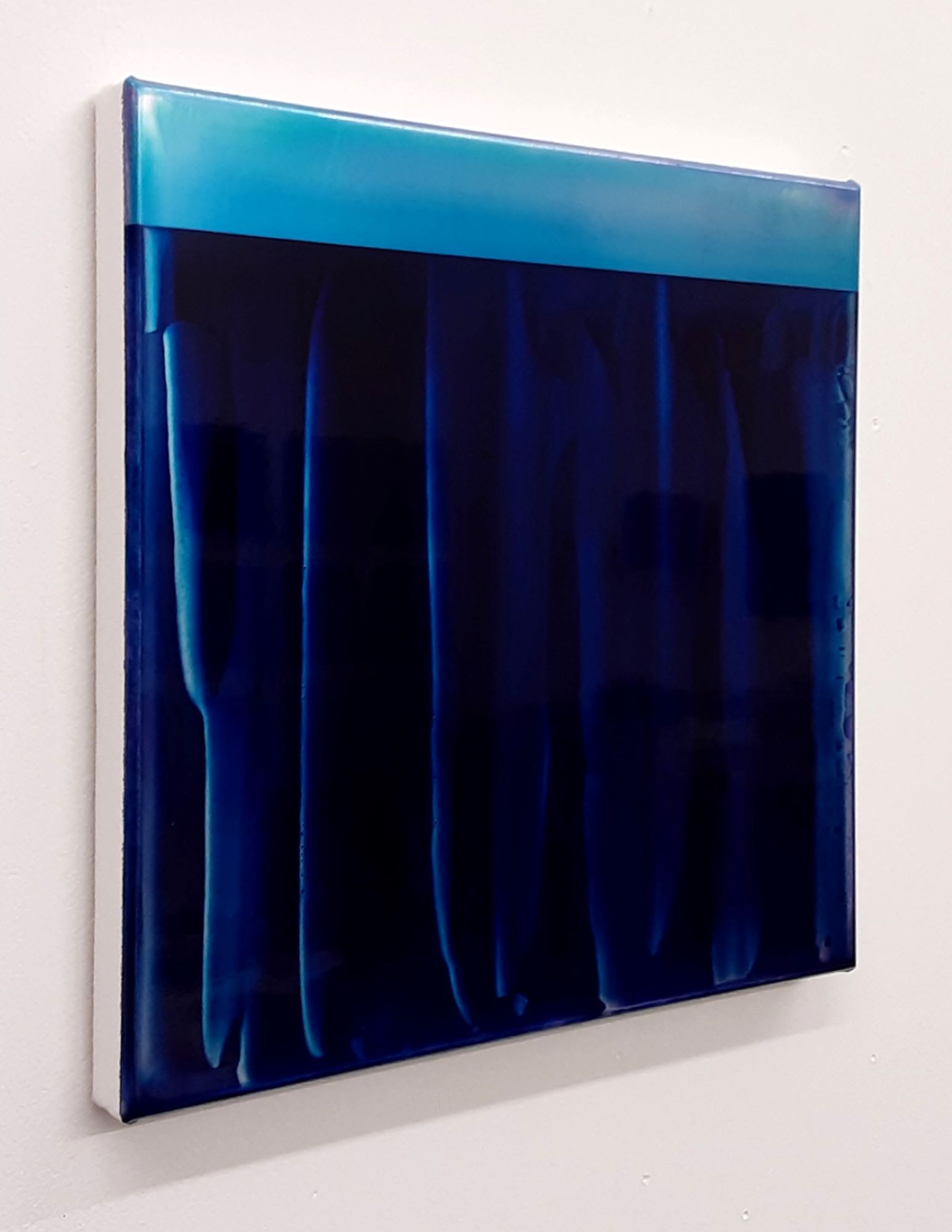 James Lumsden’s abstract paintings explore themes of light, colour and depth. His creative process involves superimposing dozens of thin layers of acrylic paint and gel gloss onto the canvas. This mixture is worked with specific tools to conceal or bring out traces and marks. Layer by layer, the artist succeeds in creating an illusion of depth and light within the painting, immersing the viewer in a mysterious and seductive universe.