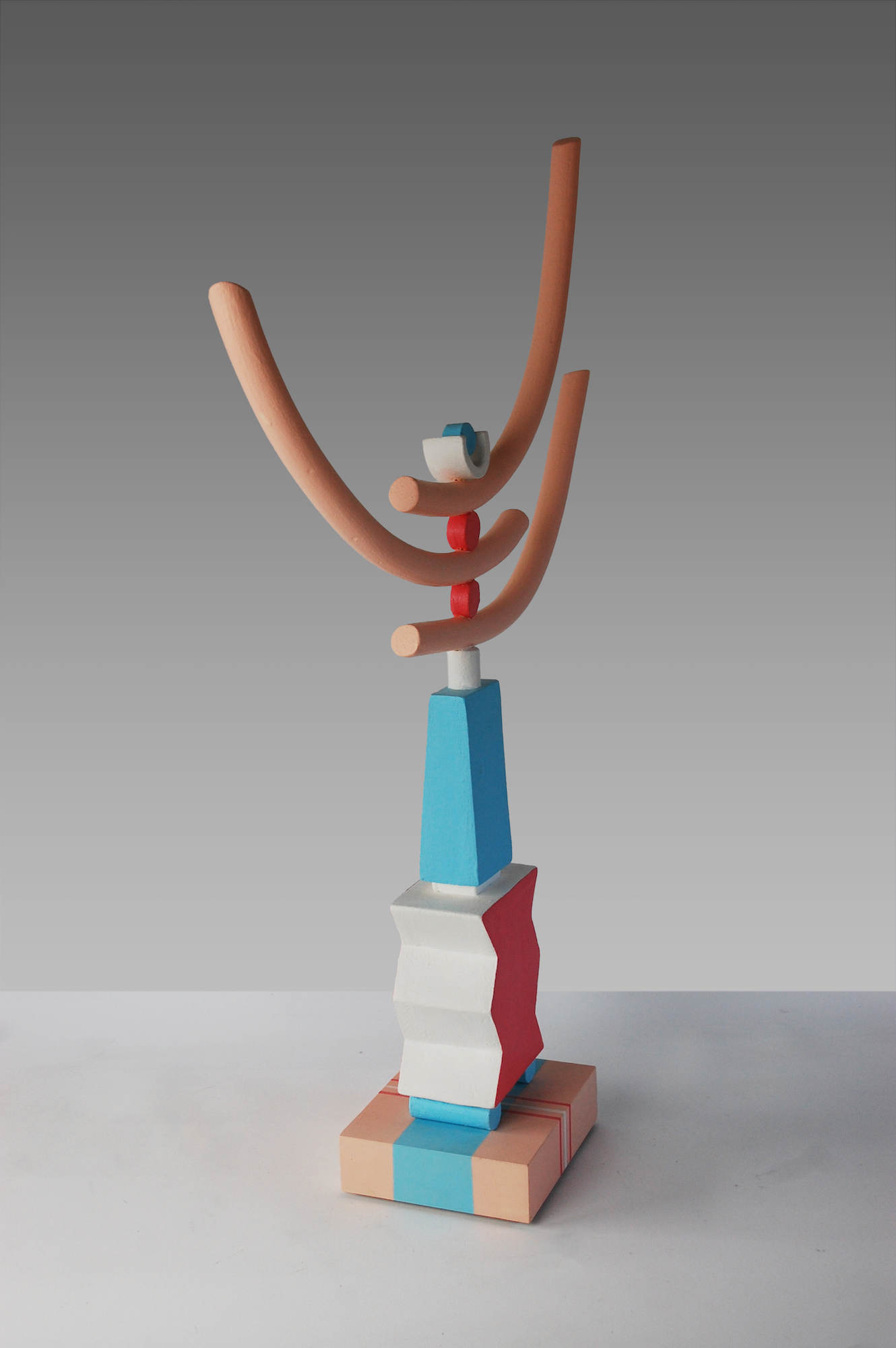 Drawing inspiration from the American tradition of painted fired clay, Patricia paints her sculptures with acrylic paint, choosing the combination of colours intuitively and subjectively, but at the same time with great consideration. The intense and vibrant colours used emphasise the shapes of the sculpture, the balances and contrasts between power and fragility, stability and precariousness, heaviness and lightness. They can suggest different ideas to the viewer, such as tranquillity, conflict or the sense of movement.