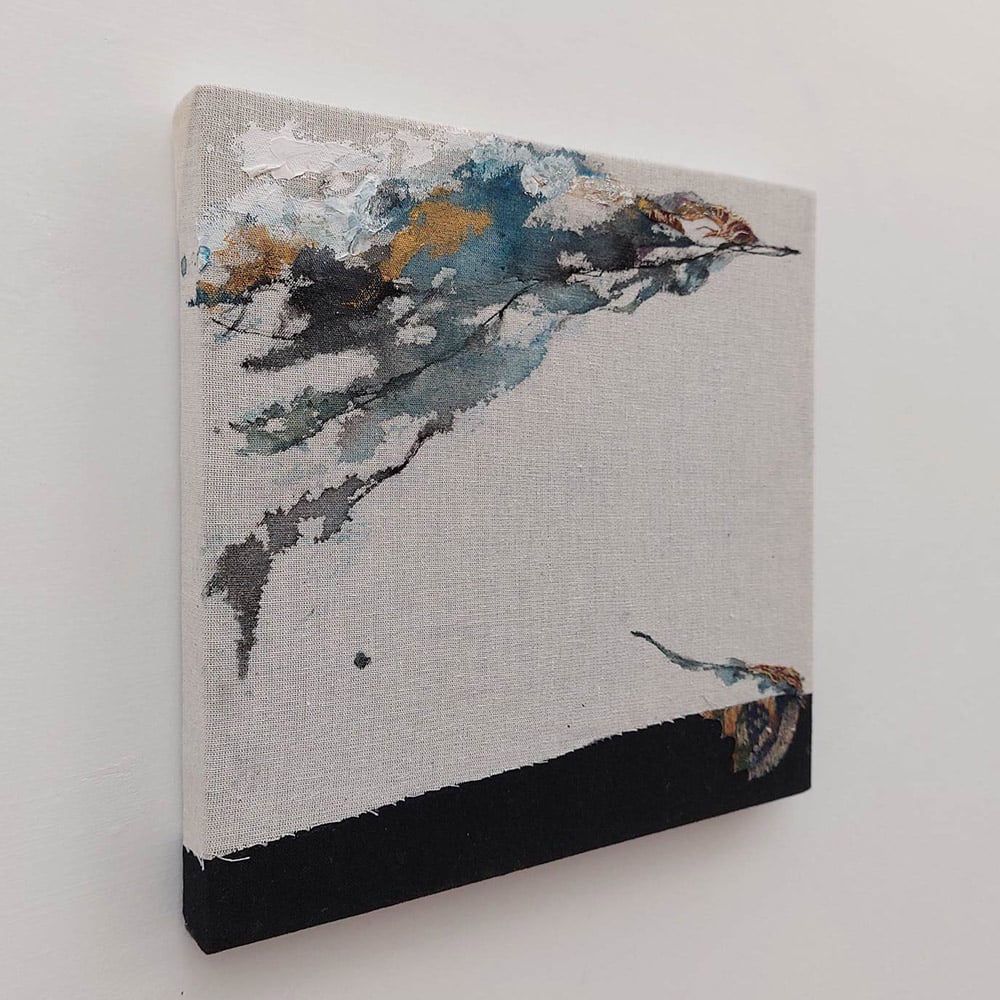 Abstract shapes and patterns complement the paintings, evoking natural elements such as leaves, bird wings and buds. However, Maho Maeda’s works are not representations or imitations of nature, but rather personal interpretations of the sounds of nature materialized in a visual form and a concrete medium.