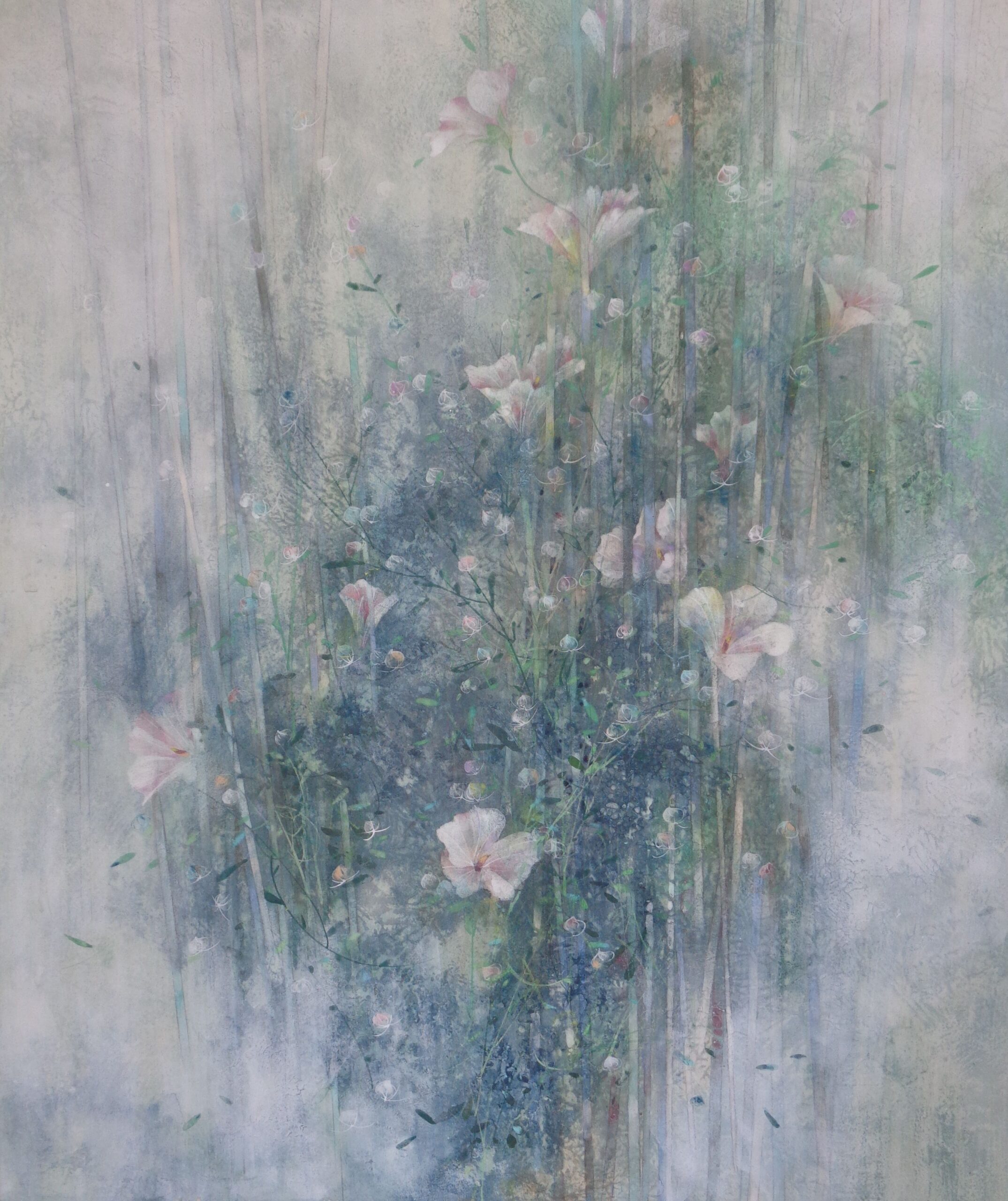 Research is a mineral pigments on Japanese paper artwork by contemporary Taiwanese artist Yiching Chen. As a specialist of Nihonga (traditional Japanese painting), the painter expresses all the poetry she finds in nature with delicacy and meticulousness. This one-off is part of the “Forests” series.