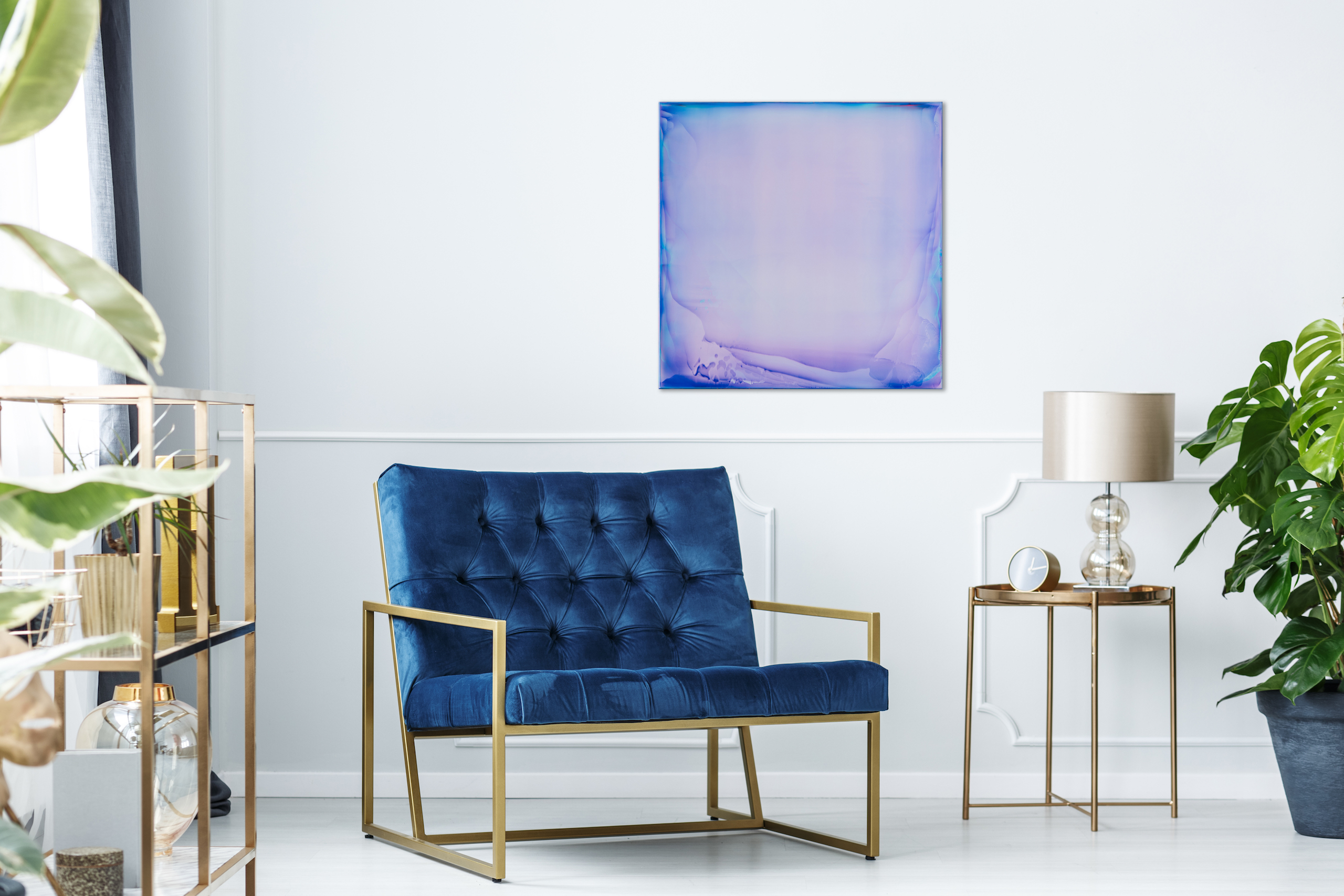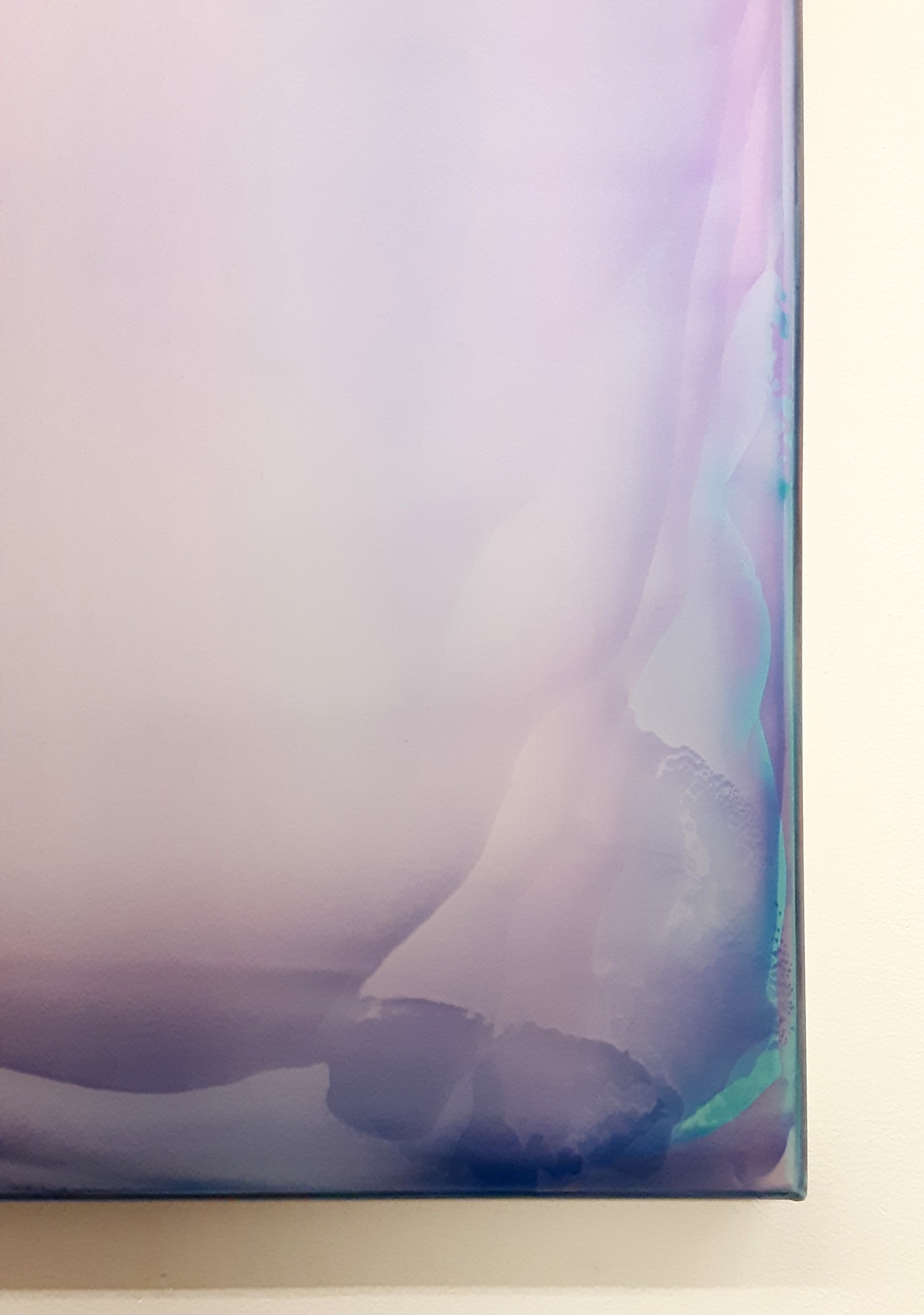 James Lumsden’s abstract paintings explore themes of light, colour and depth. His creative process consists of superimposing dozens of thin layers of acrylic paint on the canvas, worked with specific tools to conceal or bring out traces and marks. Layer by layer, the artist succeeds in creating an illusion of depth and light within the painting, immersing the viewer in a mysterious and seductive universe.