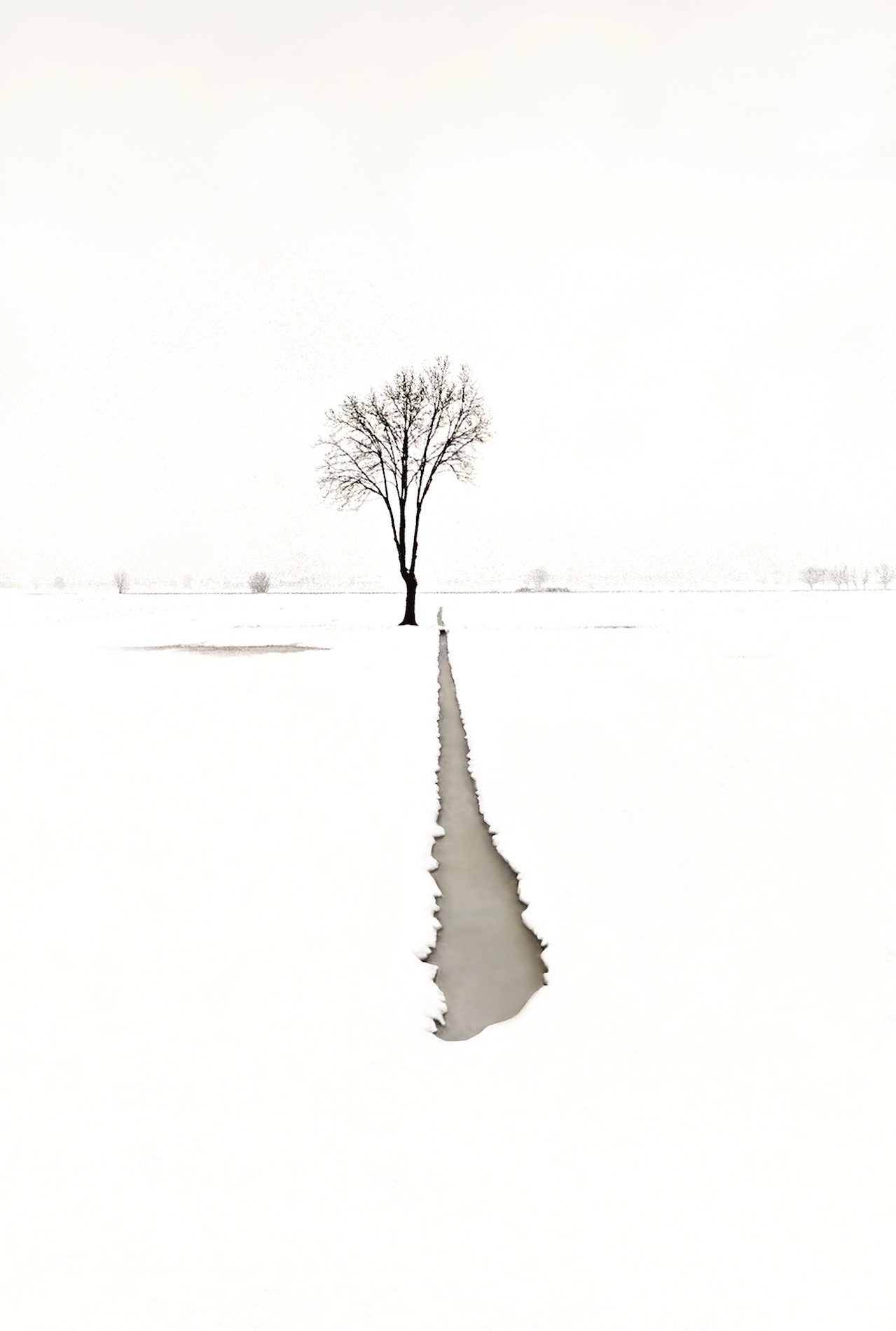 This is the series that best illustrates the photographer’s artistic approach. The landscapes of the Po plain, imbued with peace and quiet, are shown here in snow and fog. Tree trunks and furrows create graphic symmetries, while earth and sky merge into a silent white expanse.