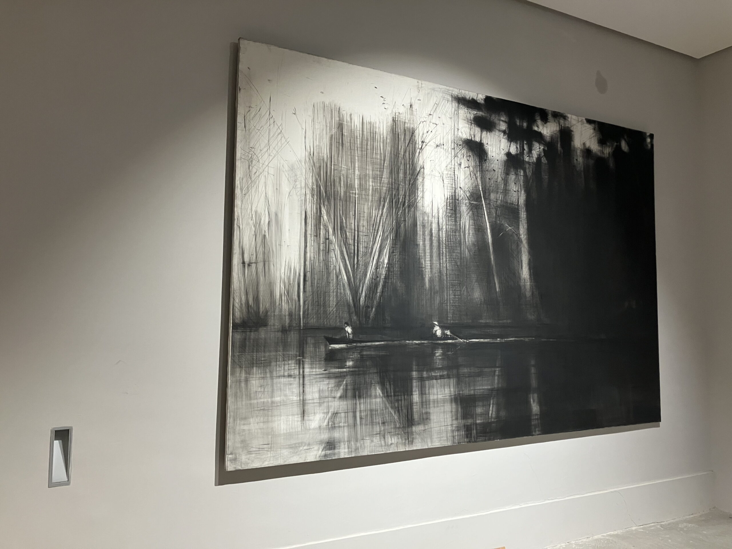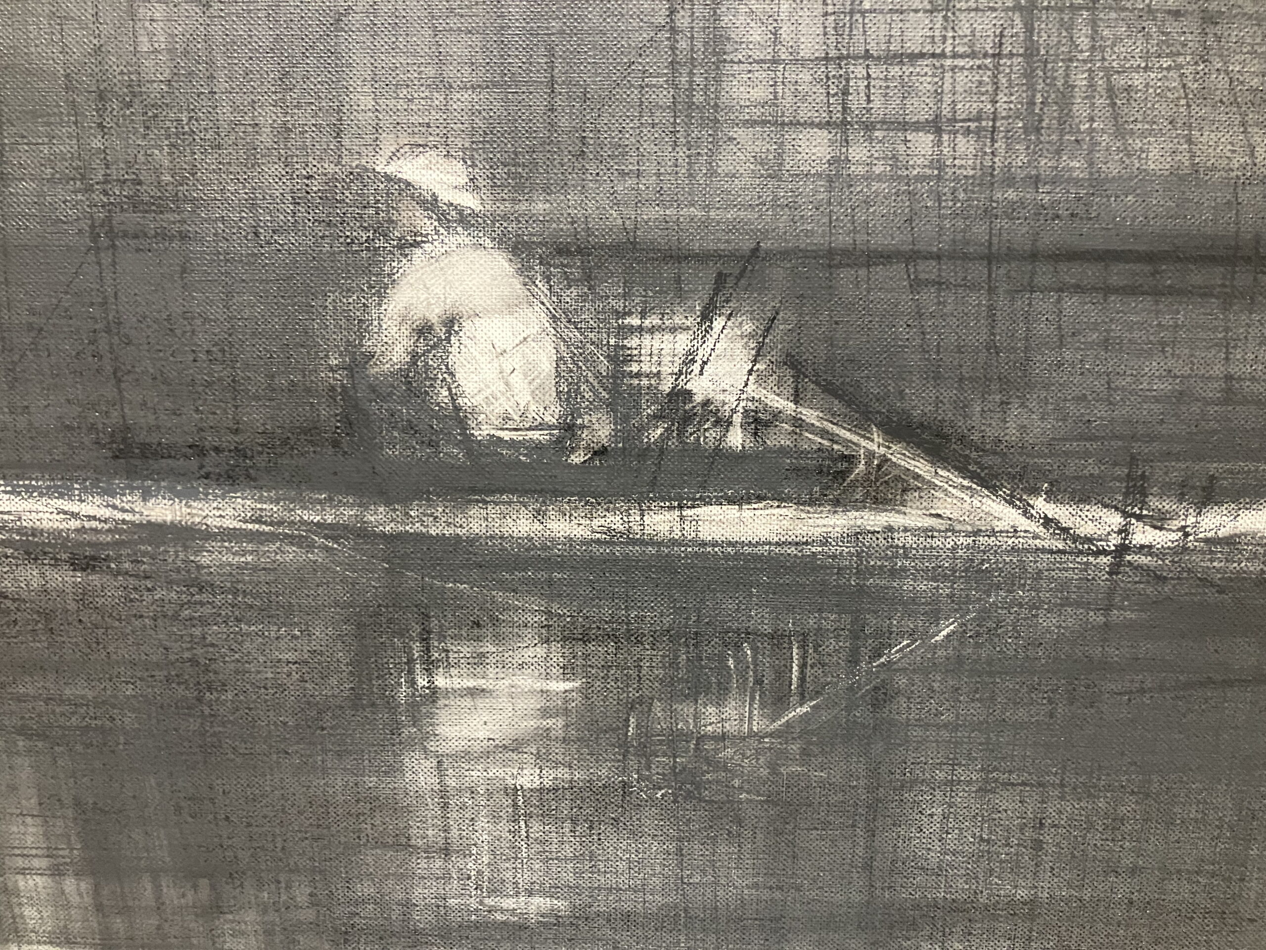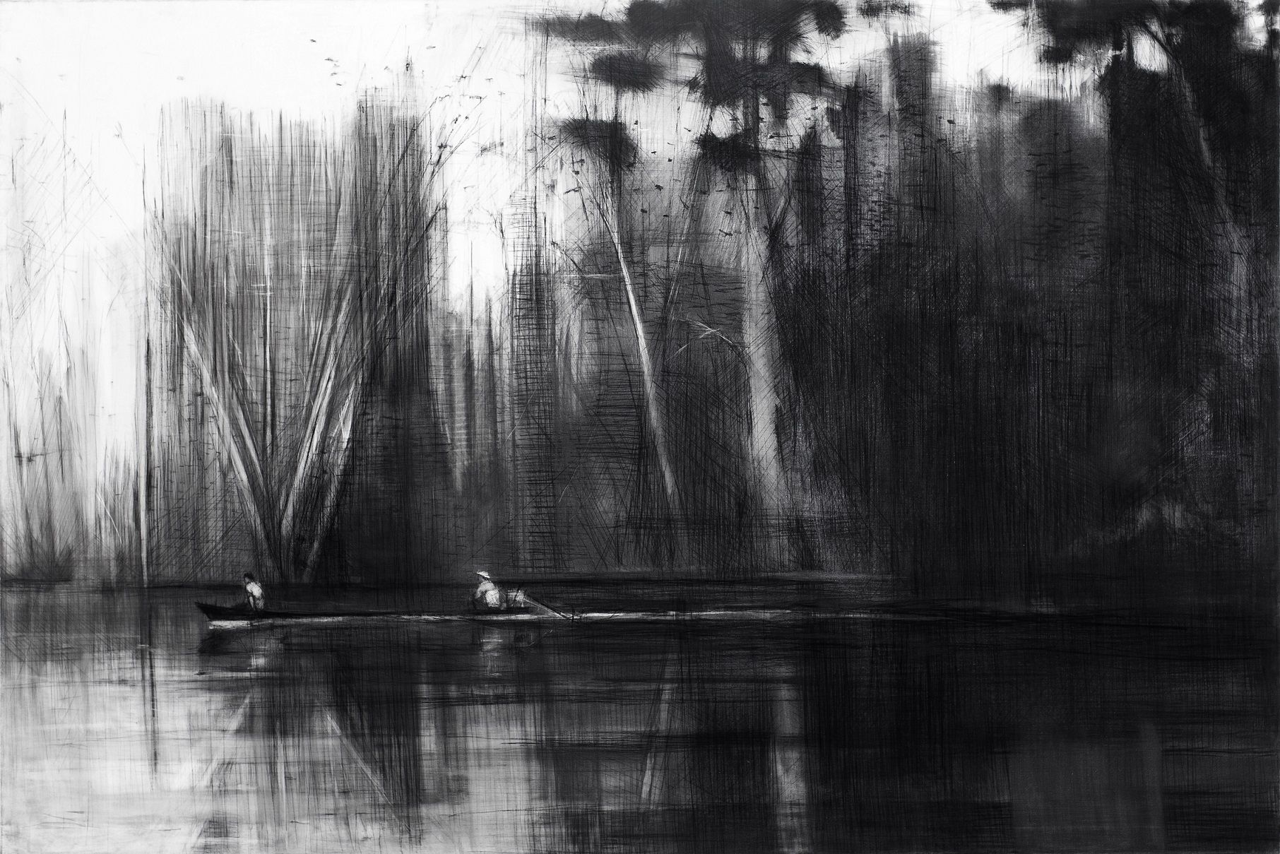 | Tags | Amazonie|black and white|boat|charcoal|drawing|Large-scale painting|Pencil artwork |