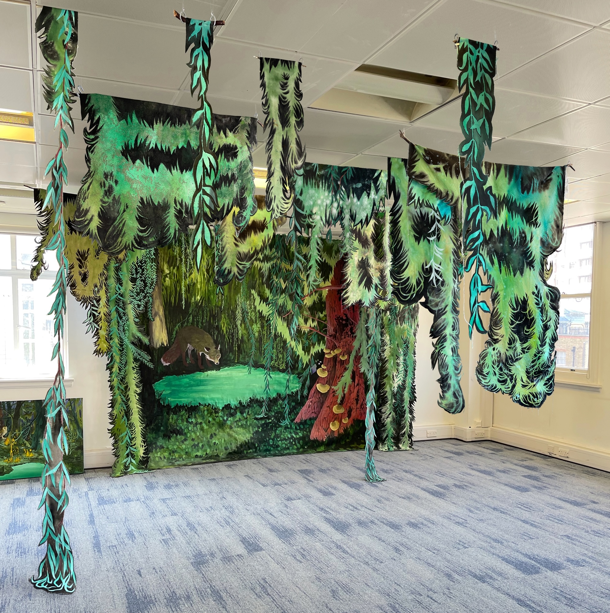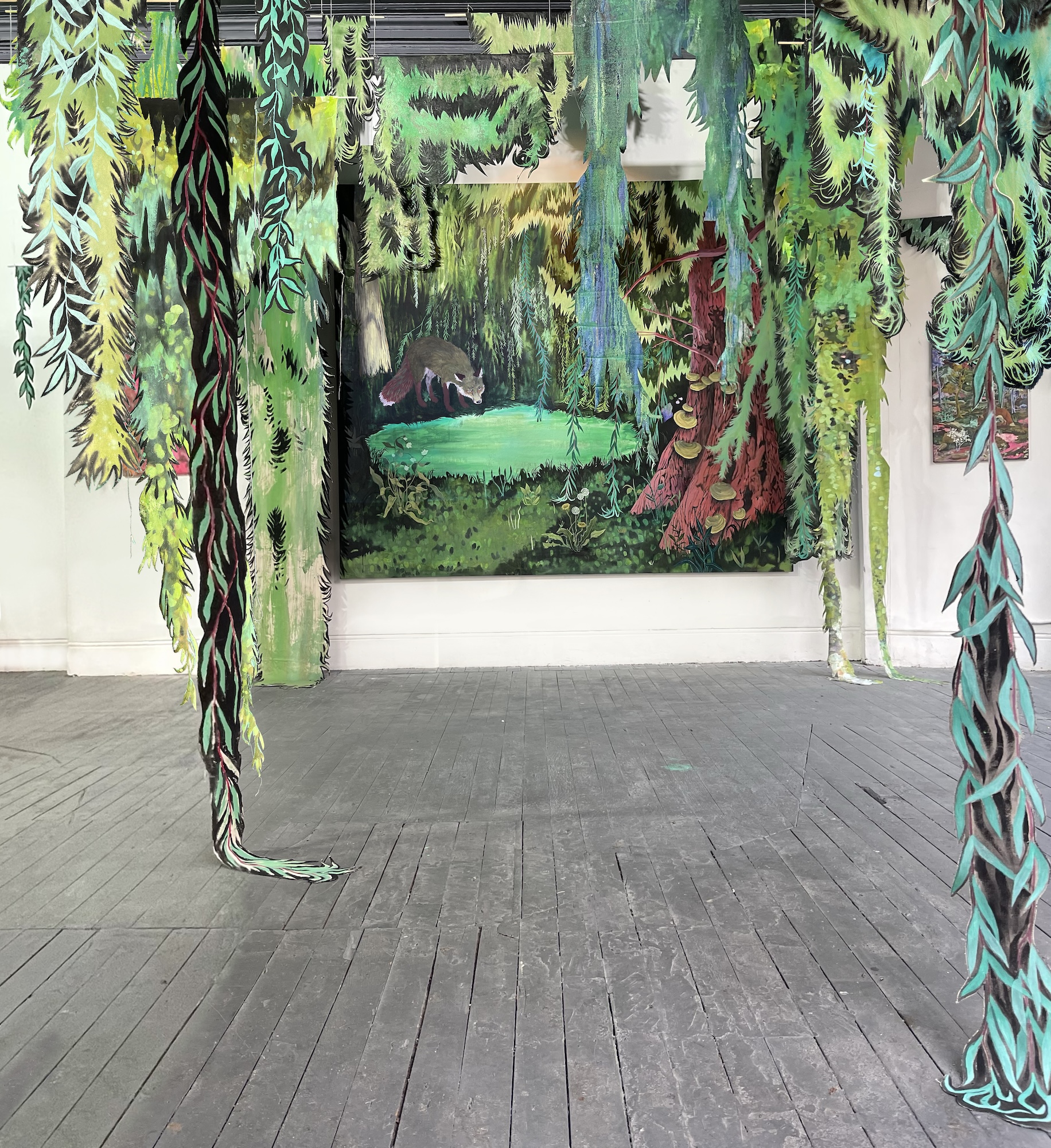 | Tags | Acrylic artwork|forest|Fox painting|green|Large-scale painting|Vivid colors painting |