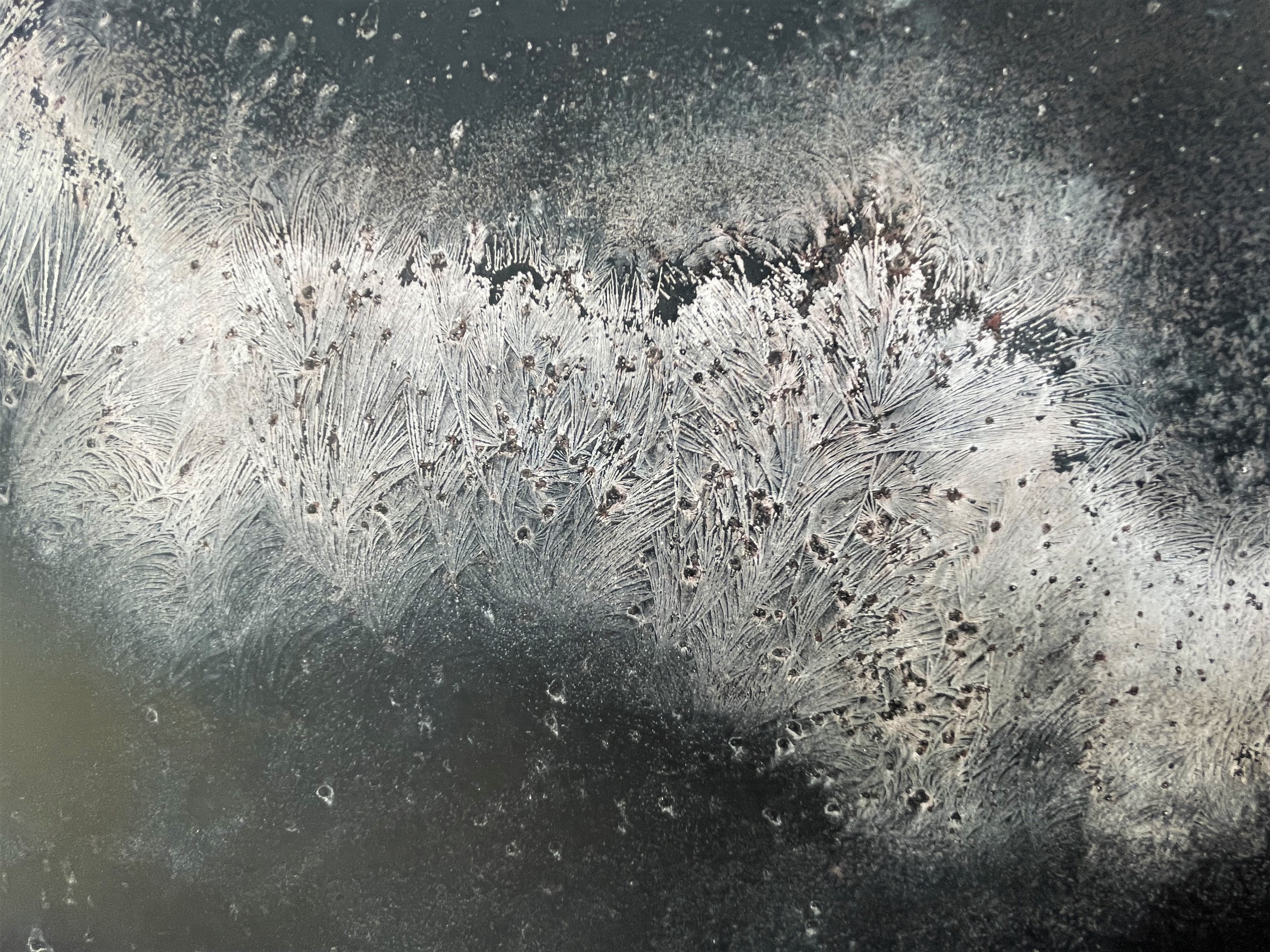 | Description | Oxidized zinc and bronze leaves on aluminum panel, patina fixed with beeswax polish |